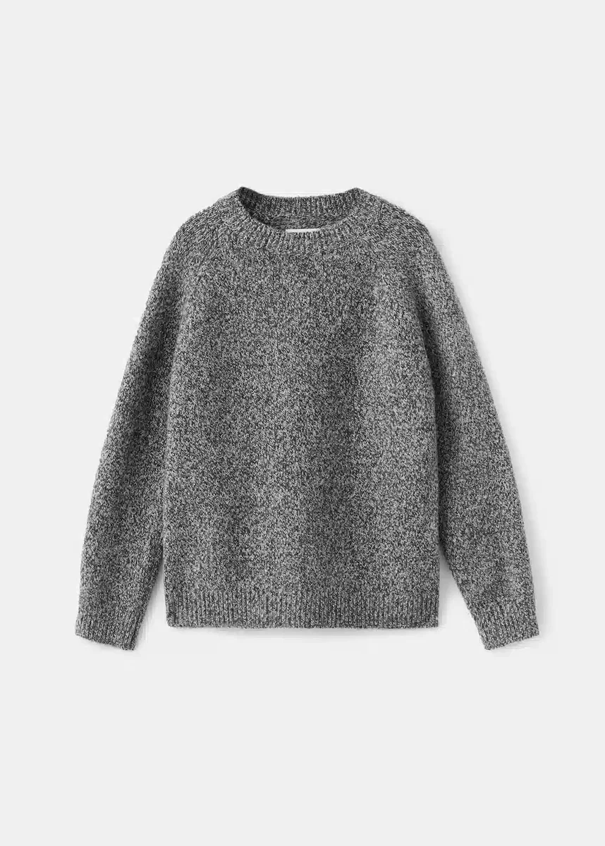 Pletená látka. Žakárový vzor s tečkami. Rovný střih. Kulatý výstřih. Dlouhé rukávy. Vánoční kolekce