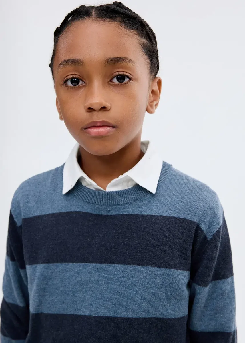 100% bavlna. Pletenina. Pruhovaný vzor. Rovný střih. Kulatý výstřih. Dlouhé rukávy.