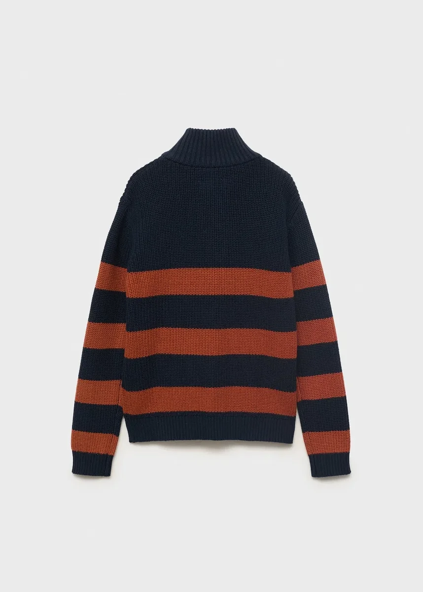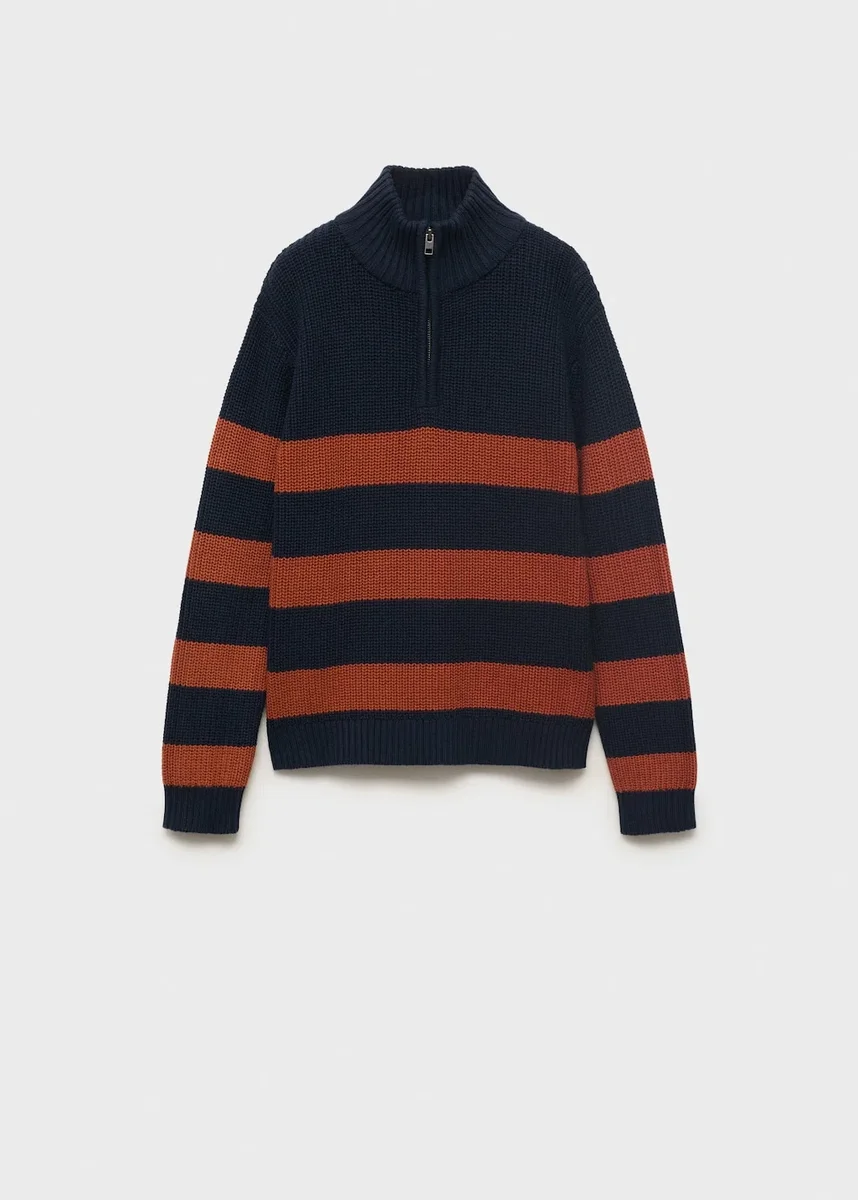 100 % bavlna. Pletenina. Rovný střih. Pruhovaný vzor. Perkinsový výstřih se zipem. Dlouhé rukávy