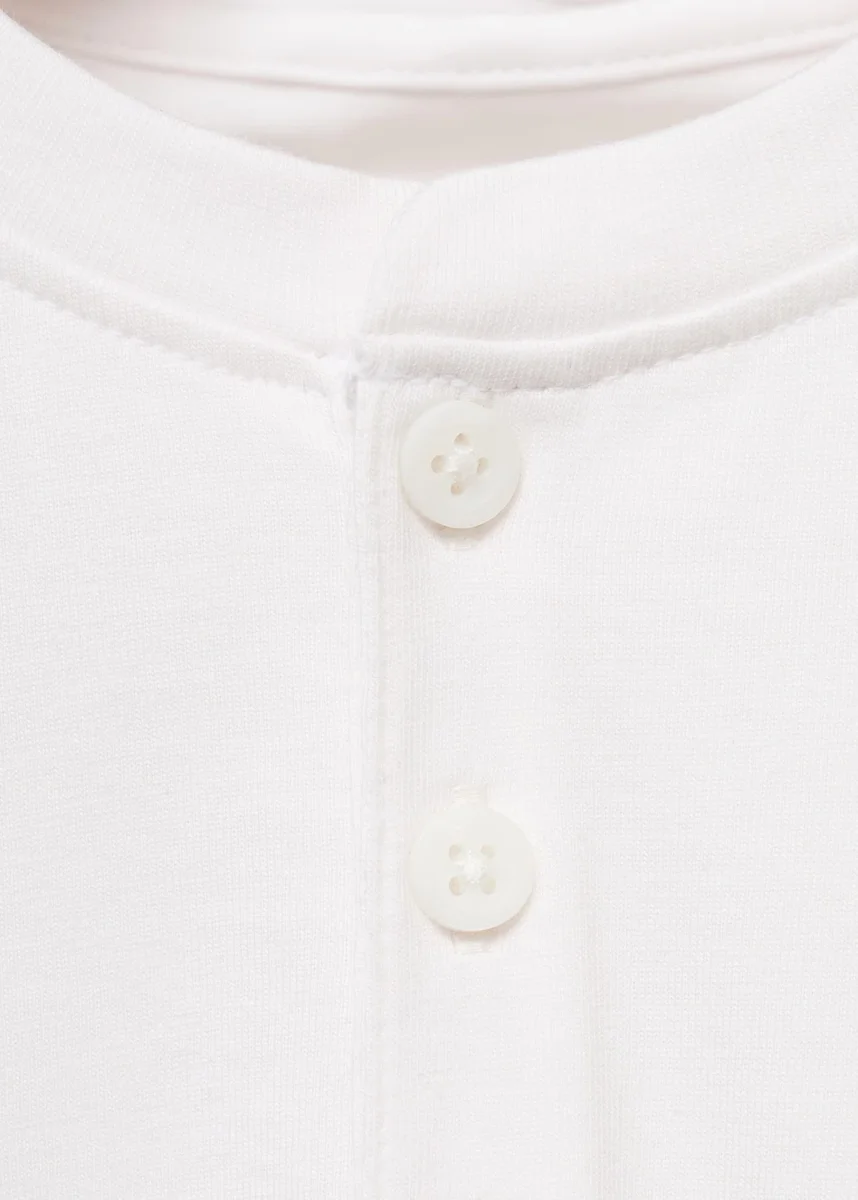 100% bavlna. Rovný střih. Jednobarevný design. Kulatý výstřih se zapínáním na knoflíky. Dlouhé rukávy.