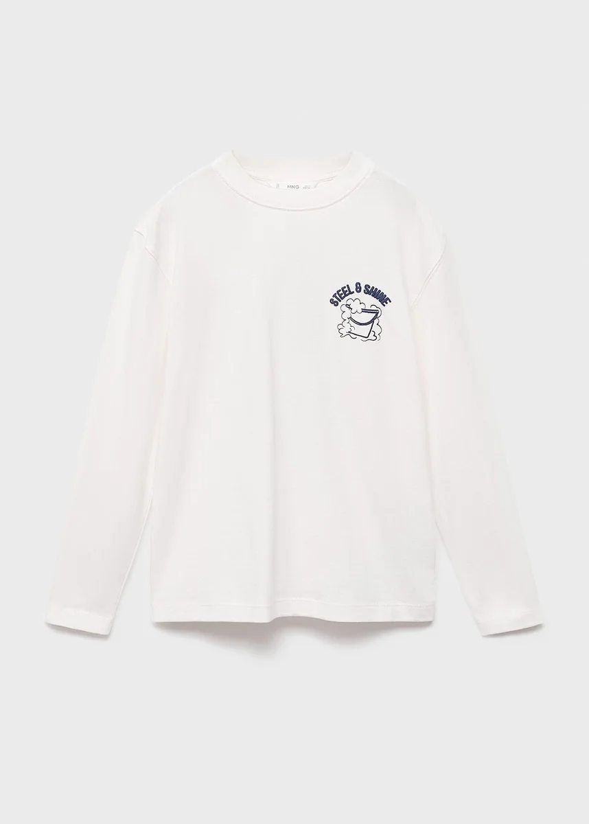 100 % bavlna. Rovný střih. Kulatý výstřih. Dlouhé rukávy. Reliéfní potisk. Potisk na přední straně. Potisk na zadní straně