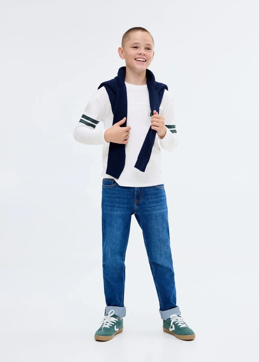 100% bavlna. Rovný střih. Vyšívaný vzor. Vyšívané číslo na jedné straně. Pruhovaný potisk. Kulatý výstřih. Dlouhé rukávy. Zpátky do školy