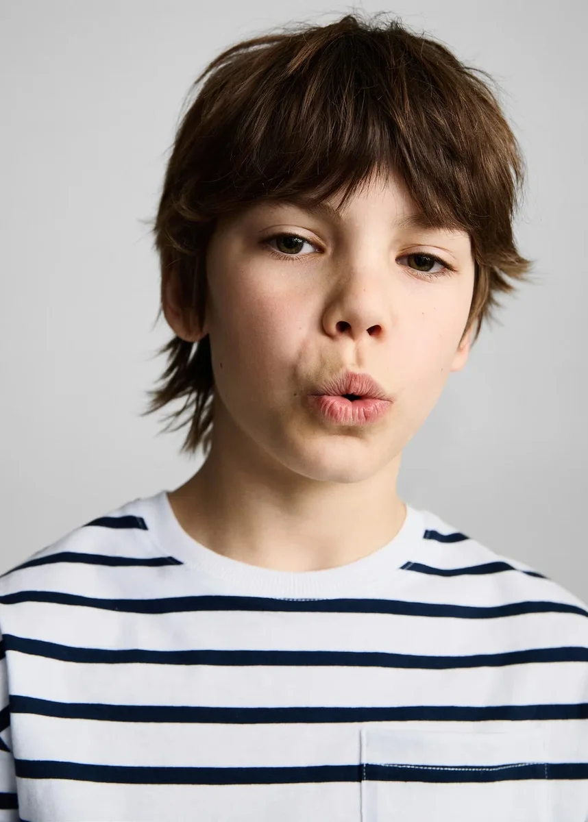 100% bavlna. Pruhovaný design. Náprsní kapsa. Kontrastní límec. Kulatý výstřih s žebrovaným lemem. Krátké rukávy.