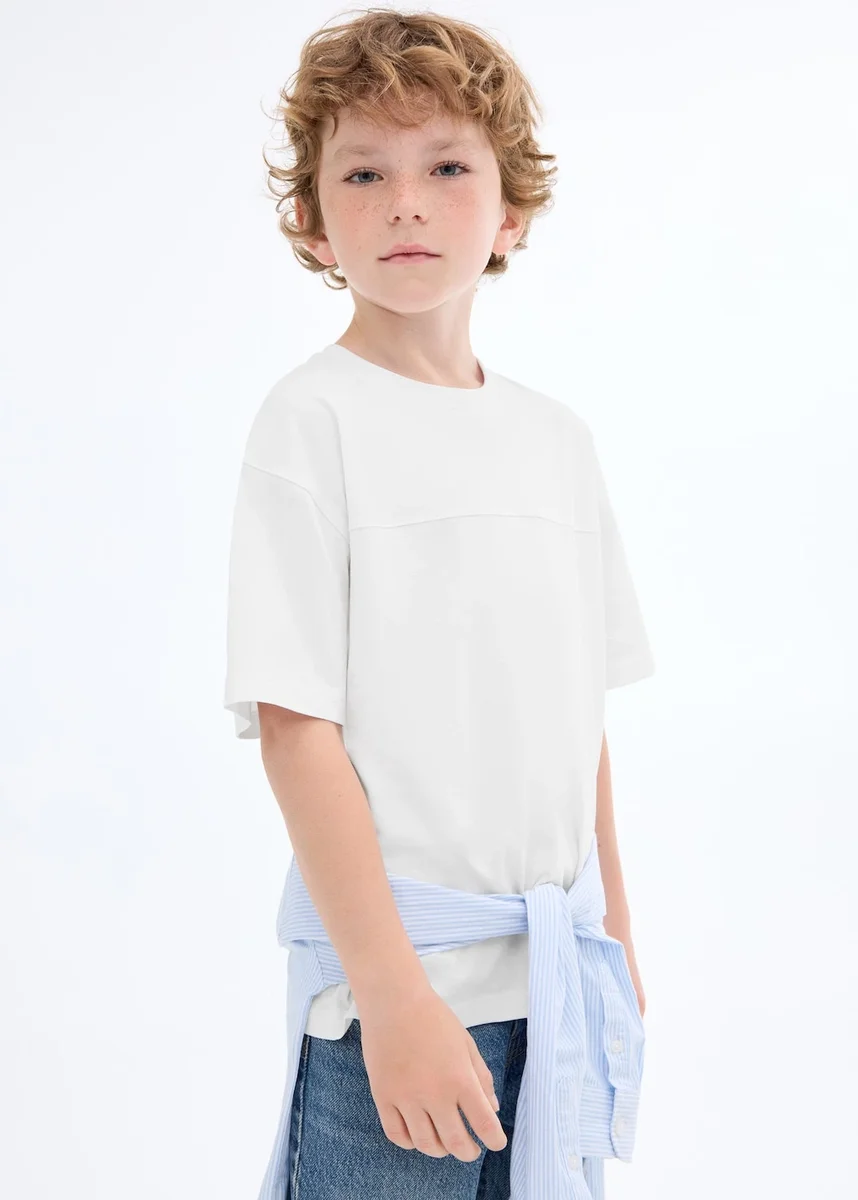 100% bavlna. Jednoduchý design. Rovný střih. Kulatý výstřih. Krátké rukávy. Prošívání na přední straně. Ozdobná etiketa