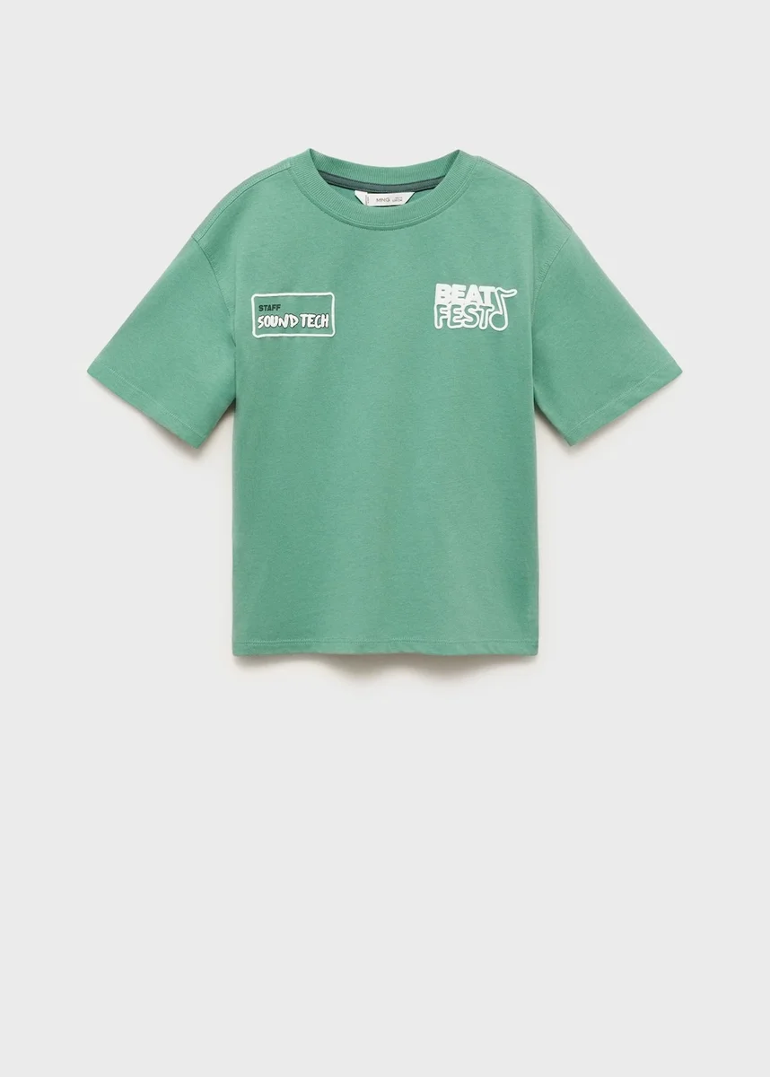 100% bavlna. Rovný střih. Potisk. Kulatý výstřih. Krátké rukávy. Reliéfní nápis na přední straně. Potisk na zadní straně.