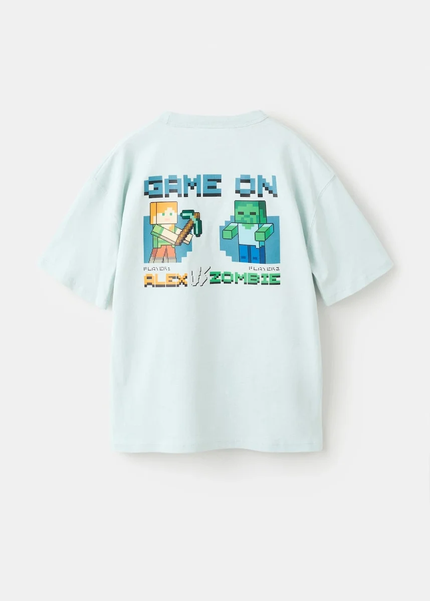 100 % bavlna. Potisk. Design Minecraft. Kulatý výstřih. Krátký rukáv. Licence