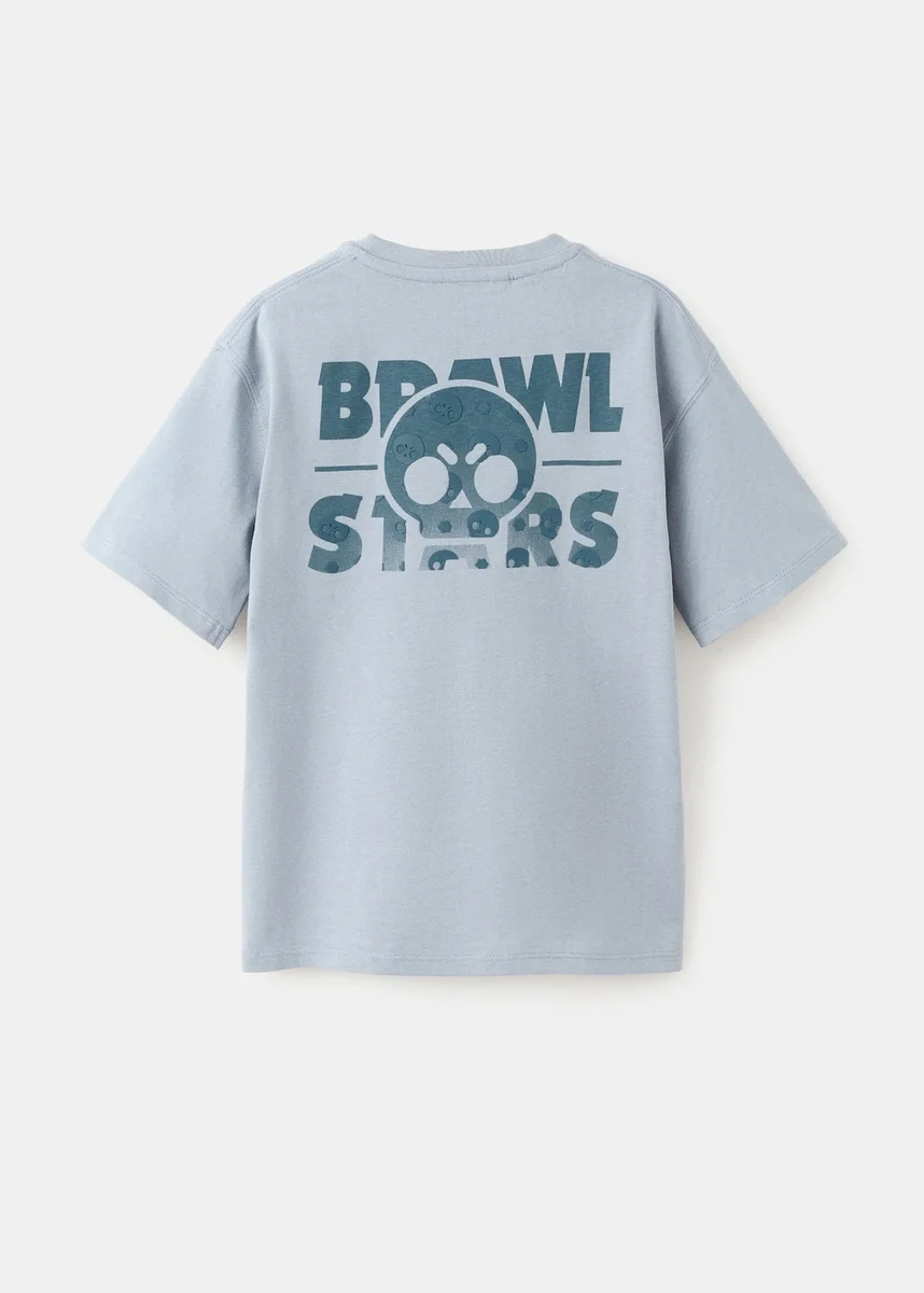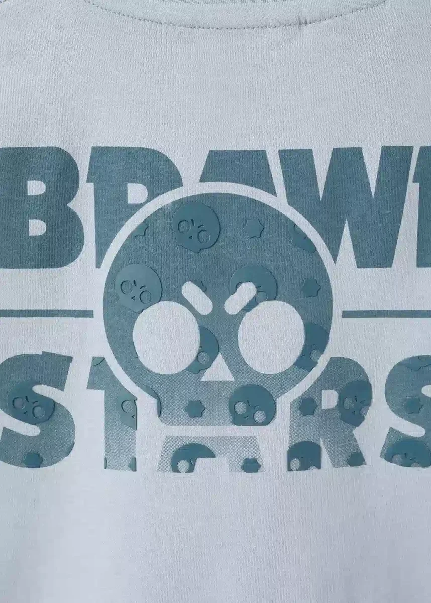 100% bavlna. Potisk. Reliéfní potisk. Brawl Stars. Kulatý výstřih. Krátký rukáv. Licence