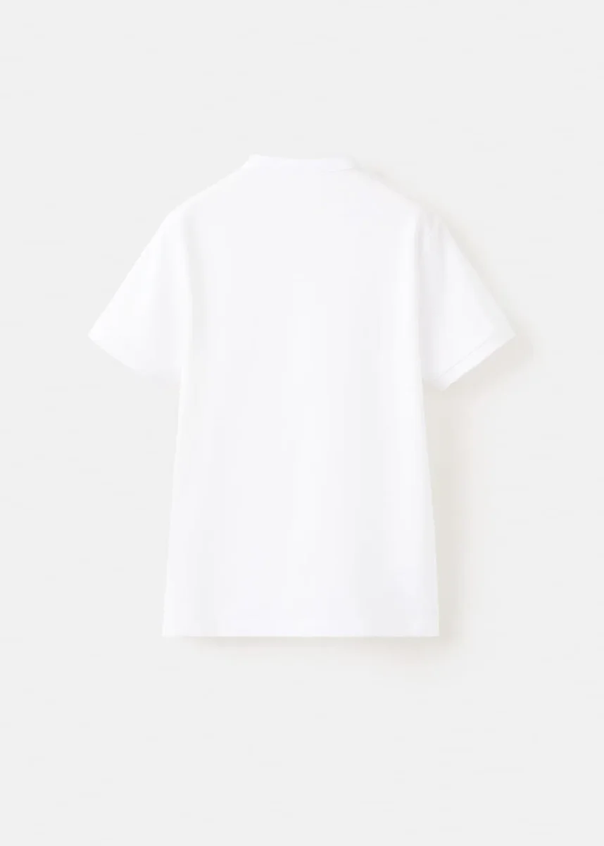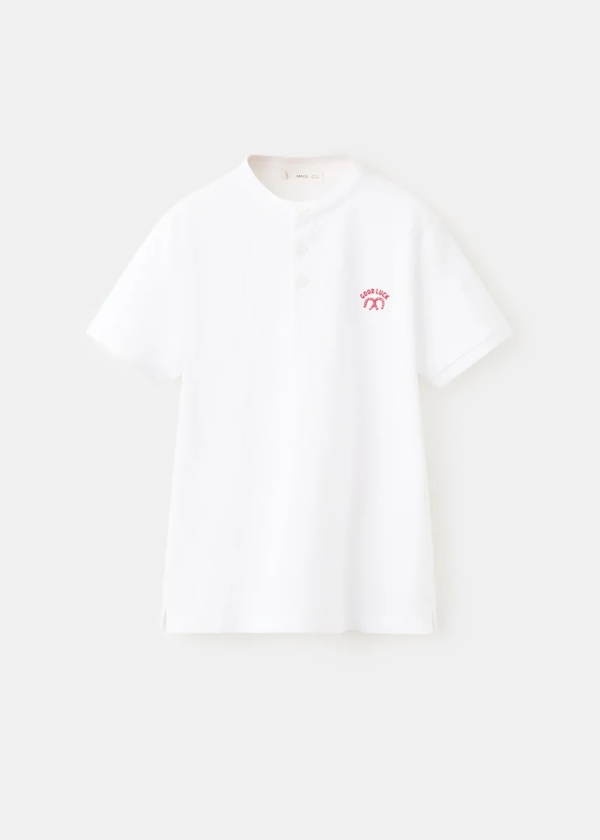 Rovný střih. Potisk. Potisk na přední straně. Límec na knoflíky. Krátký rukáv