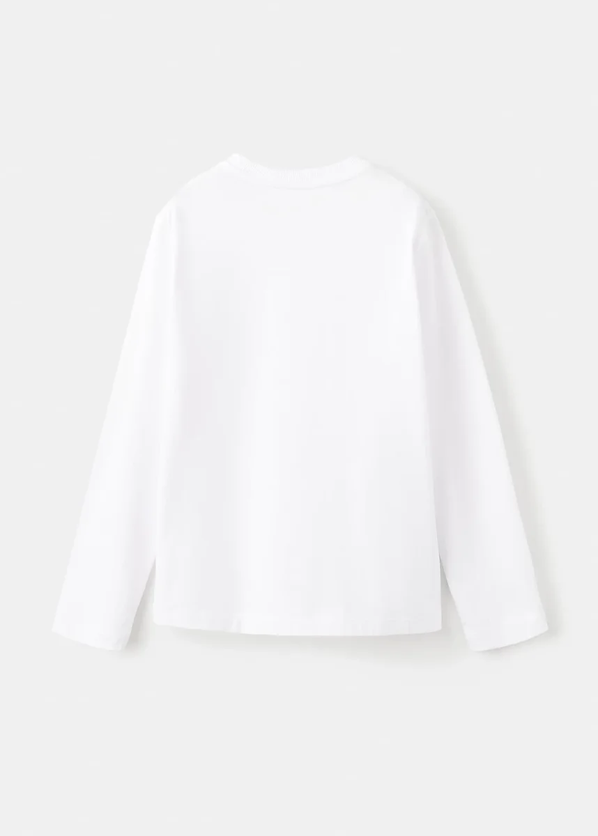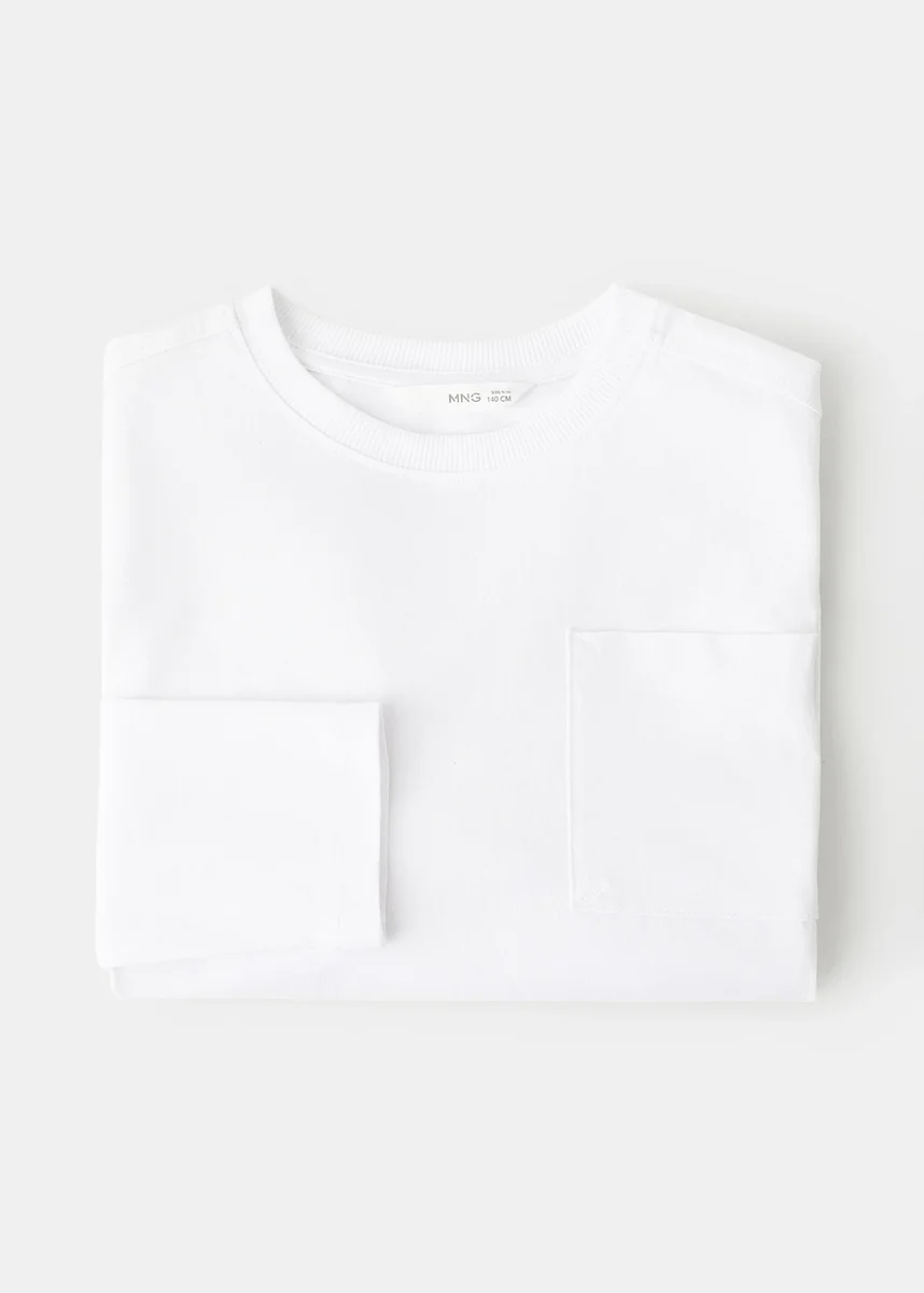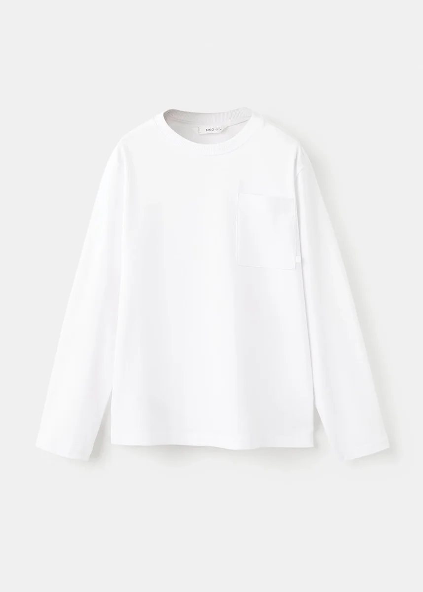 100% bavlna. Rovný střih. Žebrovaný výstřih. Dlouhé rukávy. Nášivková kapsa na přední straně