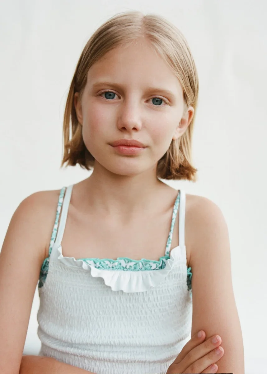 Pružný materiál. Květinový potisk. Vzorec voštiny. Rovný výstřih. Tenká ramínka. Klasické kalhotky. Detail voštiny v pase. Vnitřní podšívka. Propagační produkt
