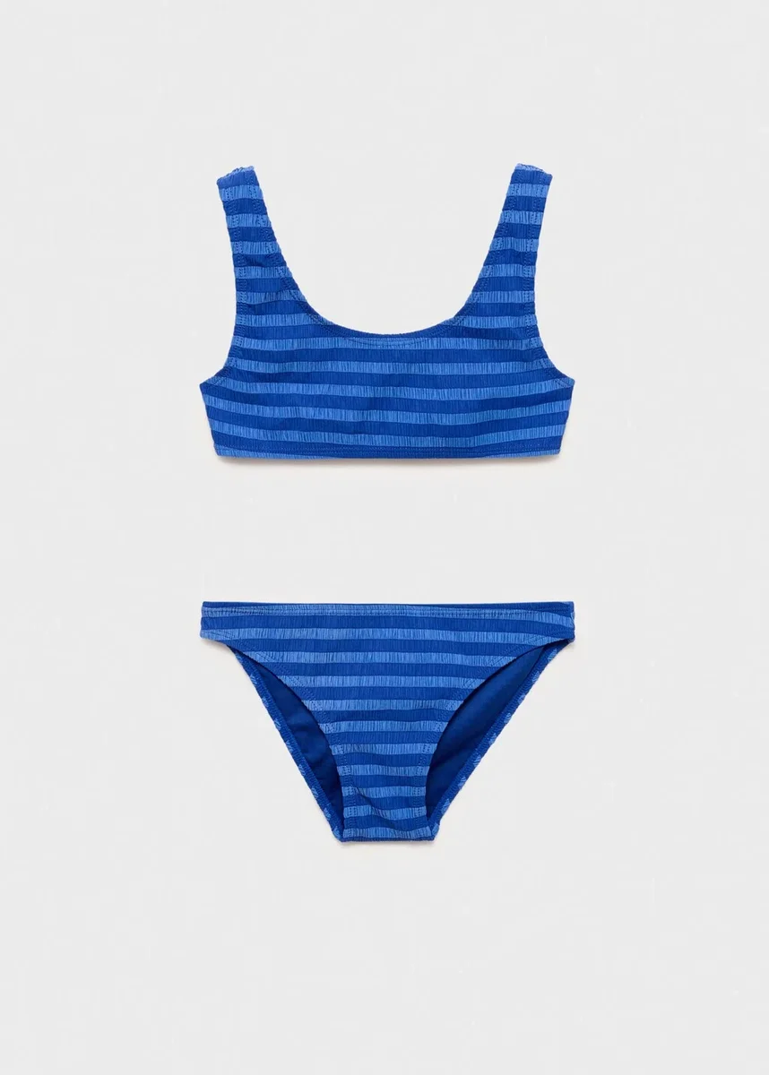 Oversized pletený kardigan. Pružný materiál. Pruhovaný potisk. Kulatý výstřih. Široké ramínka. Klasické kalhotky. Kolekce plavek. Propagační produkt