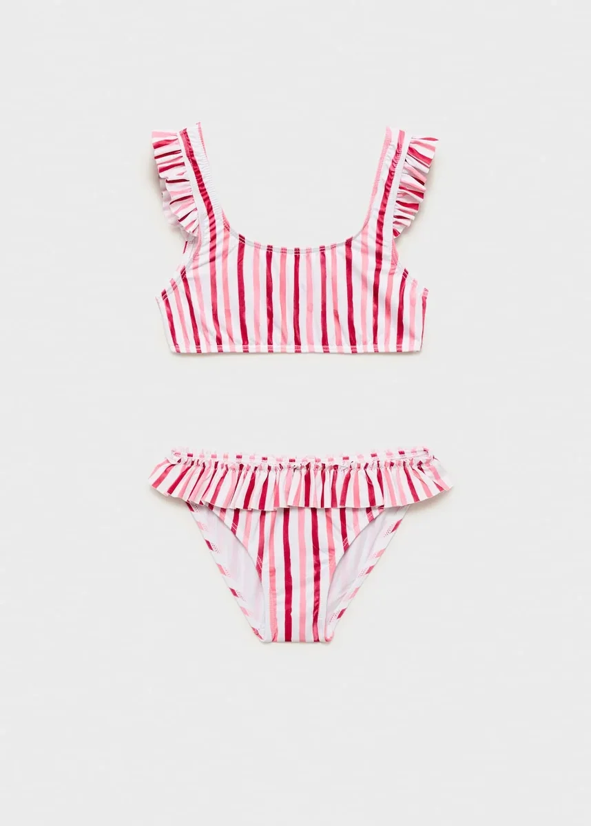 Nastavitelný pas/guma. Pružná látka. Pruhovaný střih. Volánky na ramenou. Kulatý výstřih. Volánky v pase. Akční zboží.