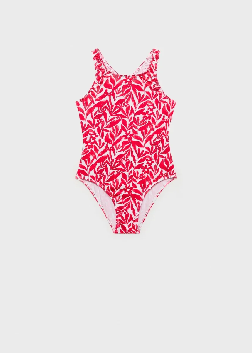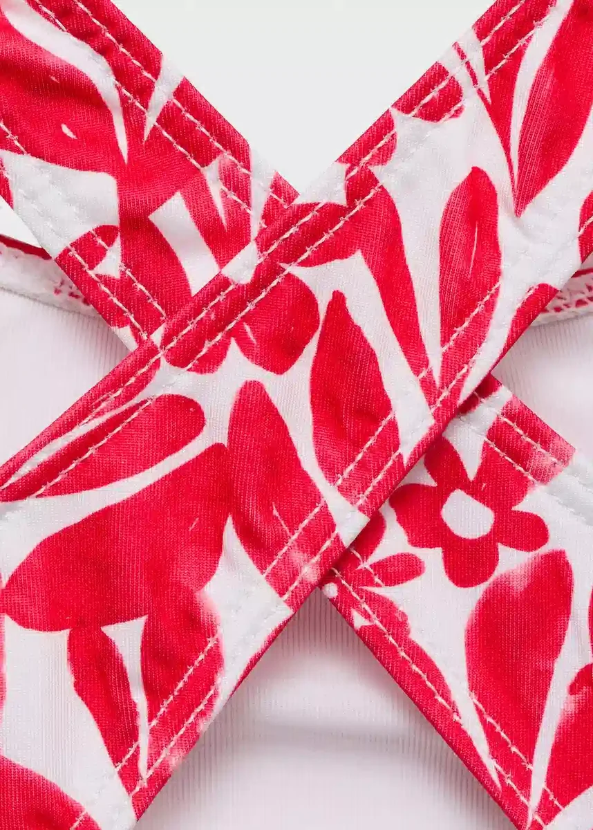 Pružný materiál. Potisk. Čtvercový výstřih. Široká ramínka. Křížená záda. Bez zapínání. Vnitřní podšívka. Kolekce plavek.