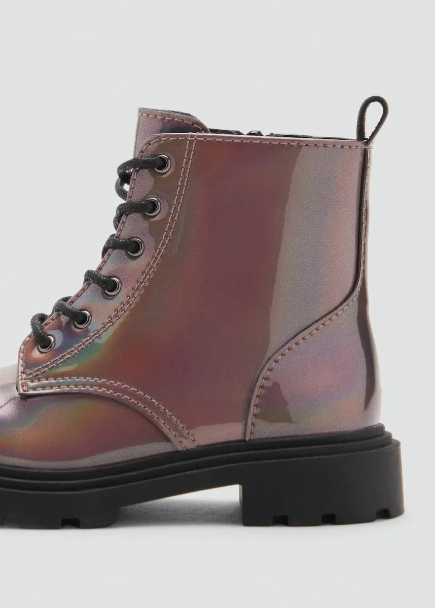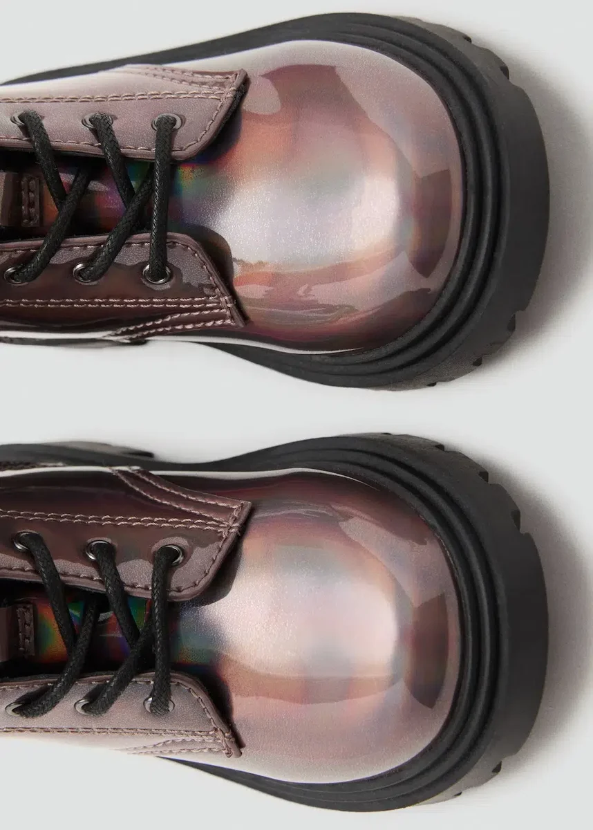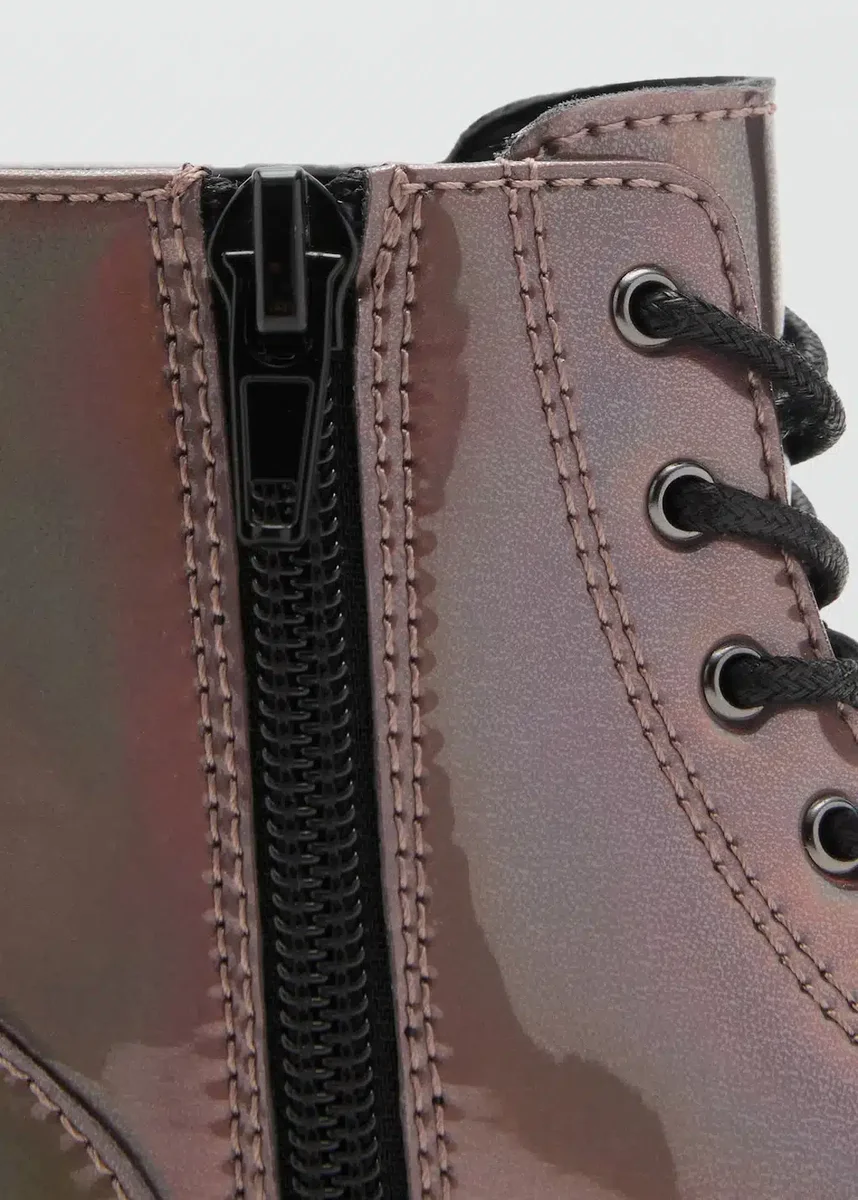Metalický povrch. Kulatá špička. Podešev typu track. Nastavitelné šněrování. Zapínání na zip. Black Friday