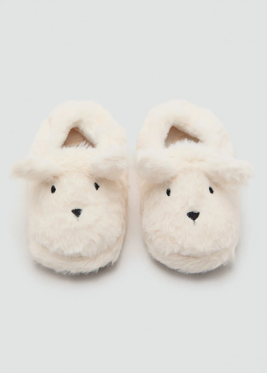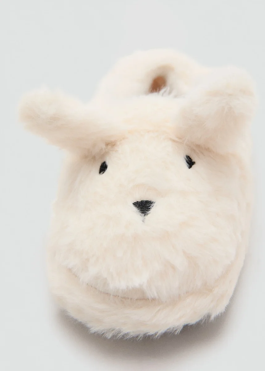 Kožešinová tkanina. Motiv malého králíčka. Pantofle. Vánoční kolekce.