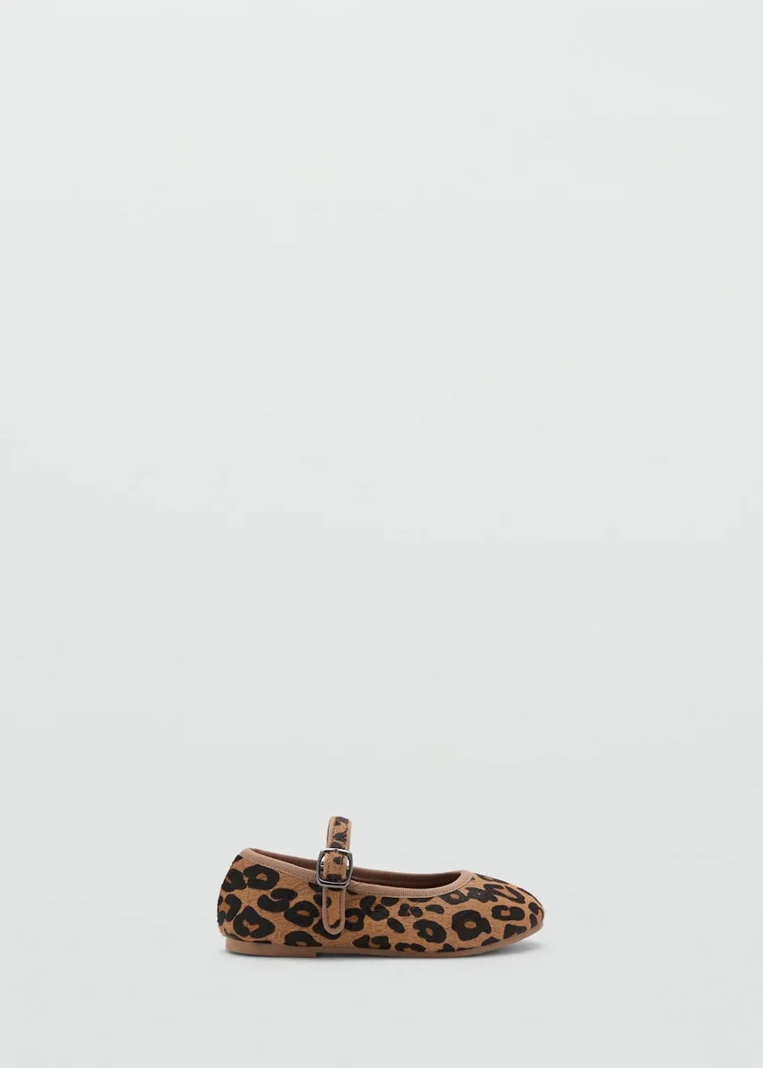 Hovězí kůže. Leopardi vzor. Kulatá špička. Nastavitelný pásek. Zapínání na přezku.