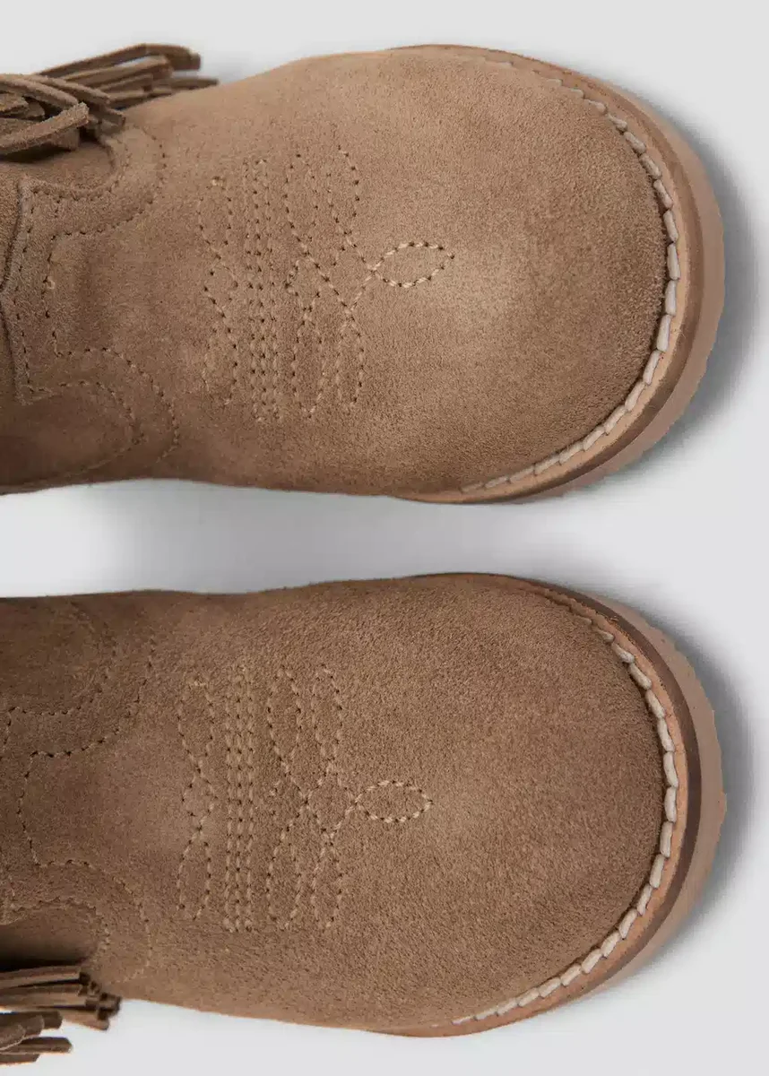 100 % hovězí kůže. Kovbojský styl. Zaoblená špička. Aplikace třásní. Zapínání na zip. Černý pátek