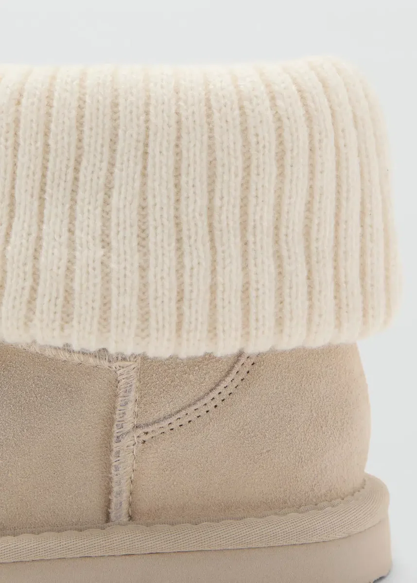Hovězí kůže. Semiš. Kulatá špička. Podšívka s kožešinovým efektem. Detaily s reverzním stehem. Vánoční kolekce. Černý pátek.