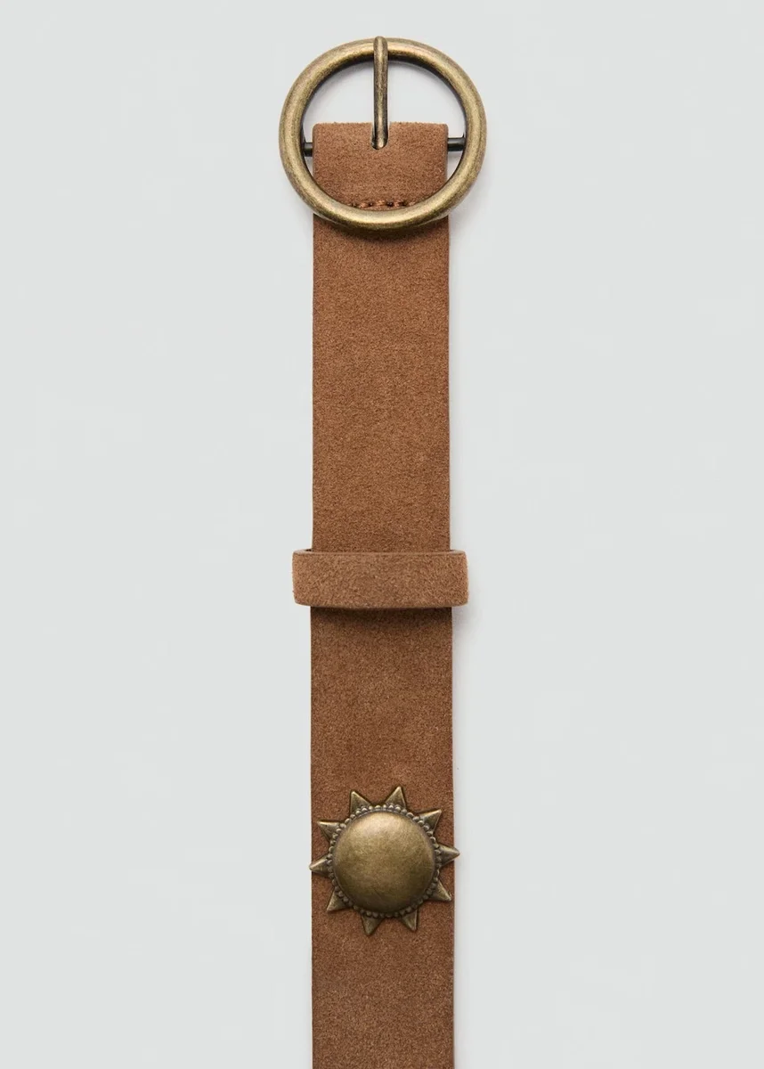 Kůže. Zapínání na přezku. Jedna smyčka. Design slunce