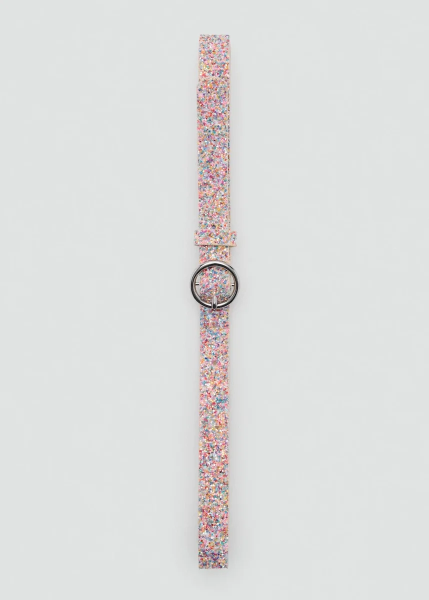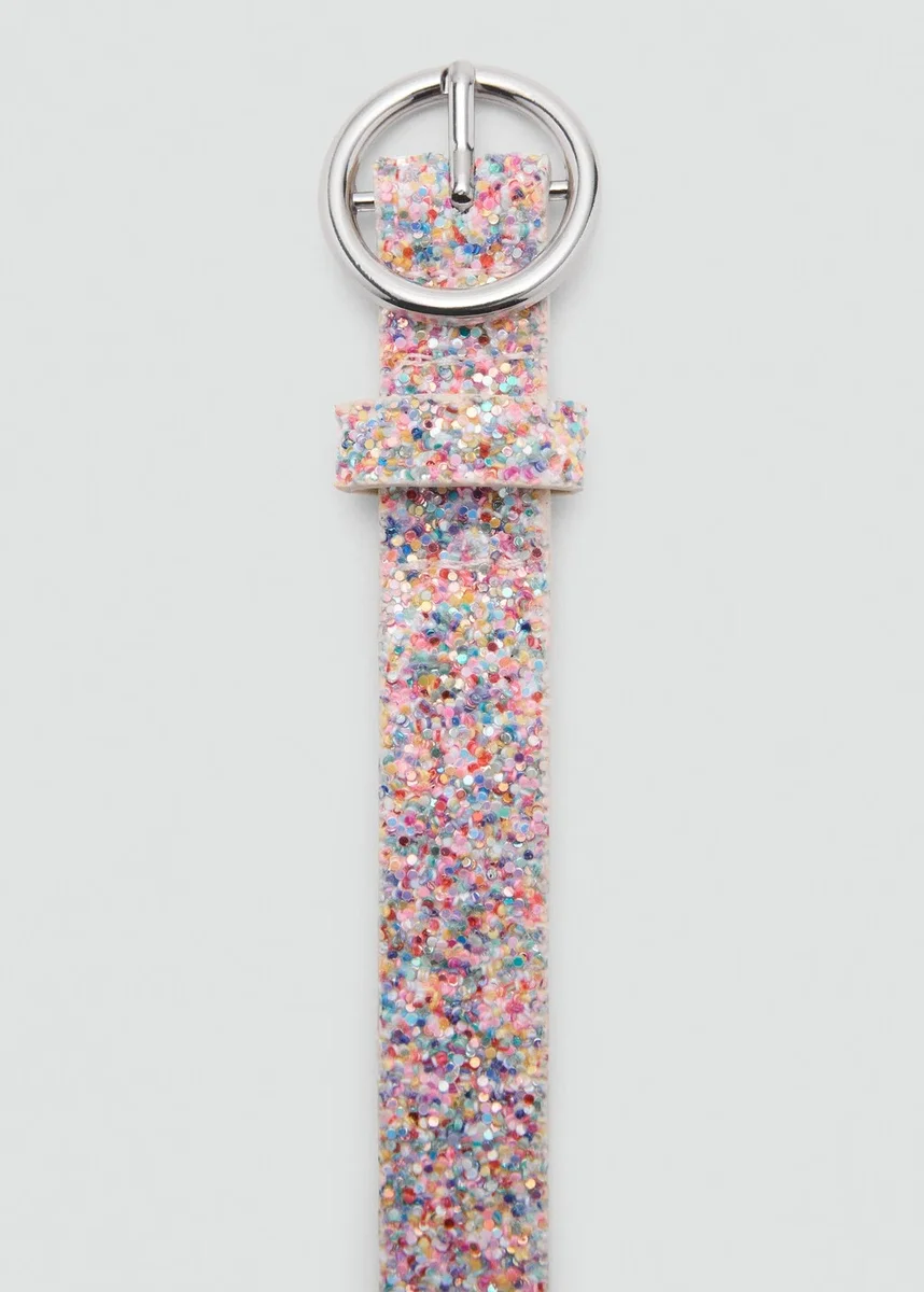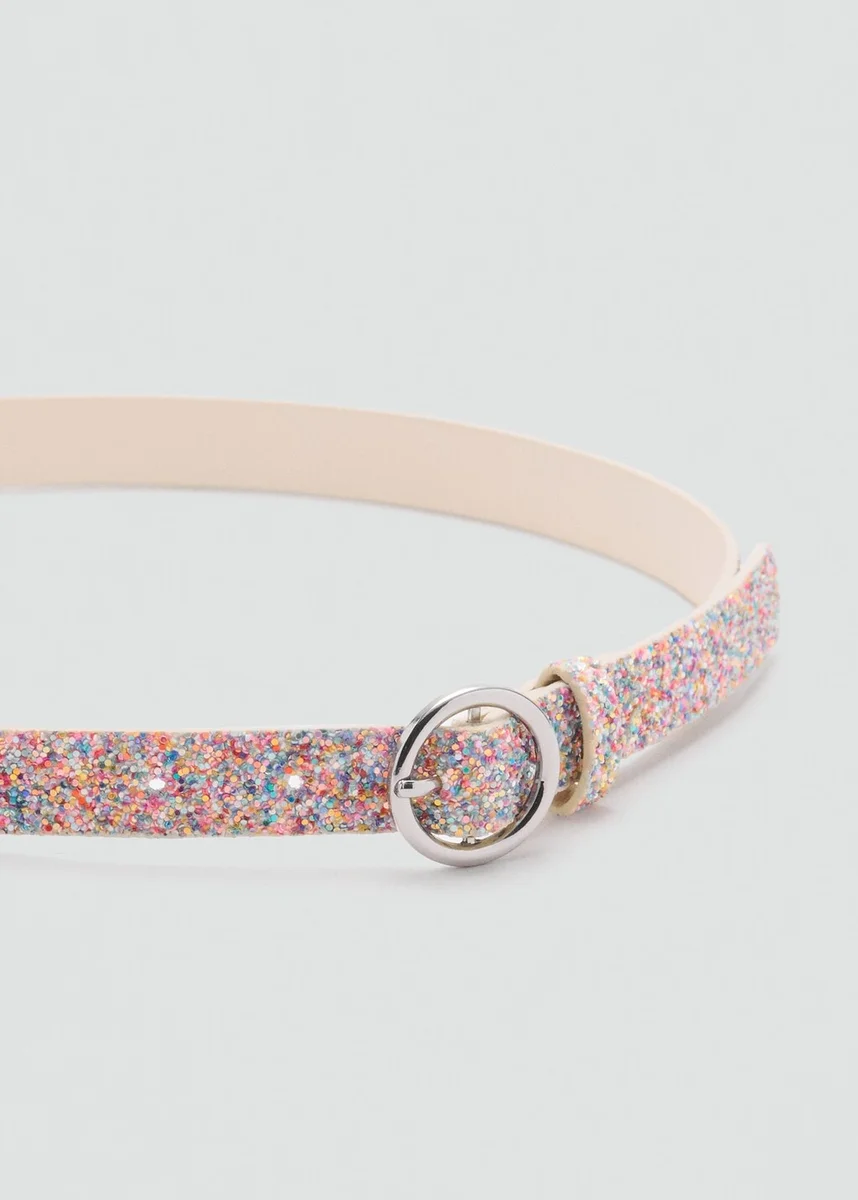 Štíhlý design. Dekorativní třpytky. Zapínání na kulatou sponu.