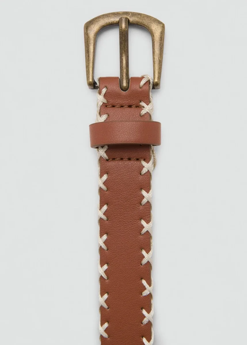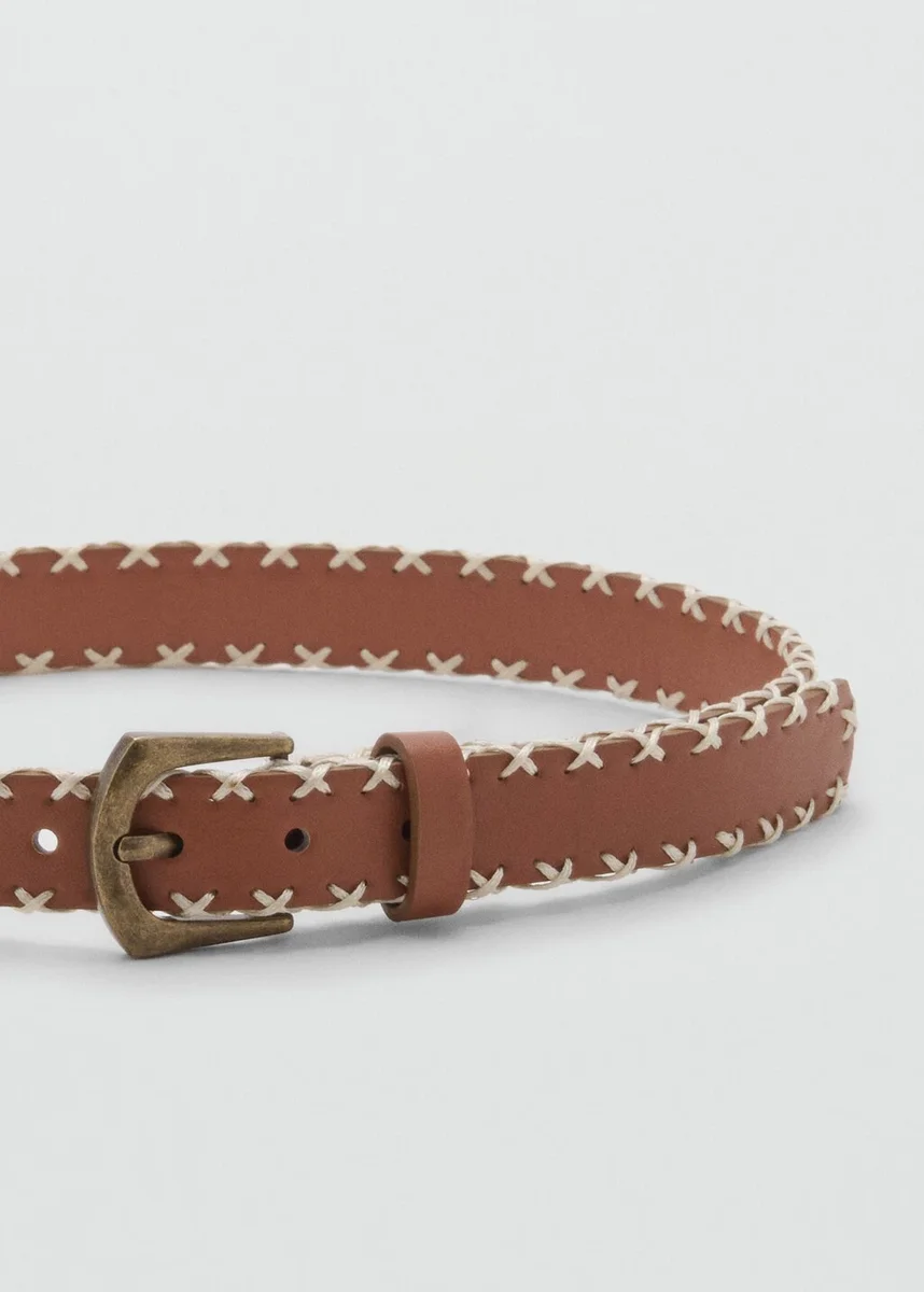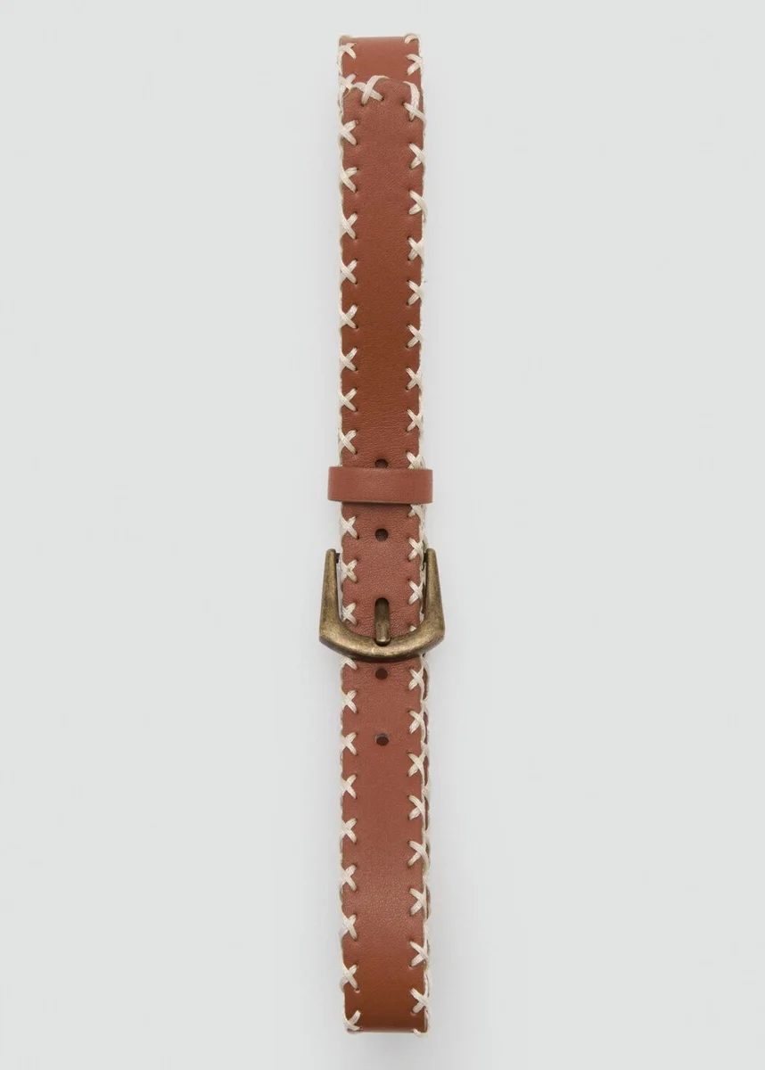 Kožený efekt. Vyšívané detaily. Zapínání na přezku. Jedna smyčka.