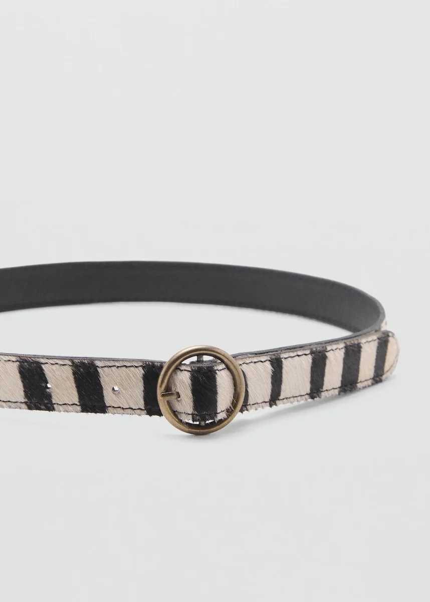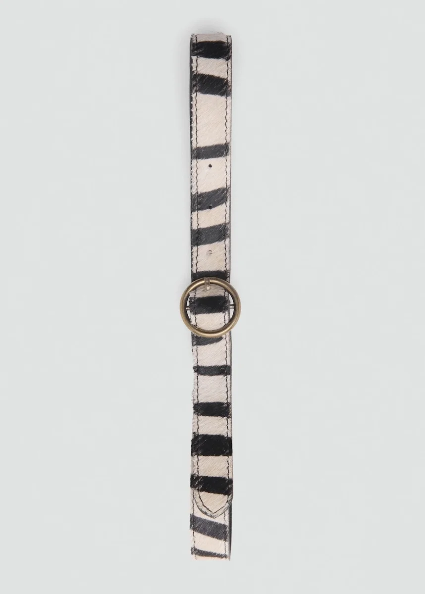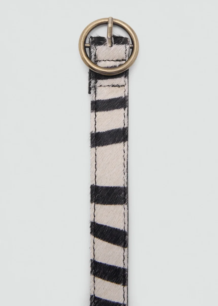 100 % hovězí kůže. Kožešinová tkanina. Tkanina s zvířecím potiskem. Zebří vzor. Úzký design. Zapínání na přezku. Černý pátek