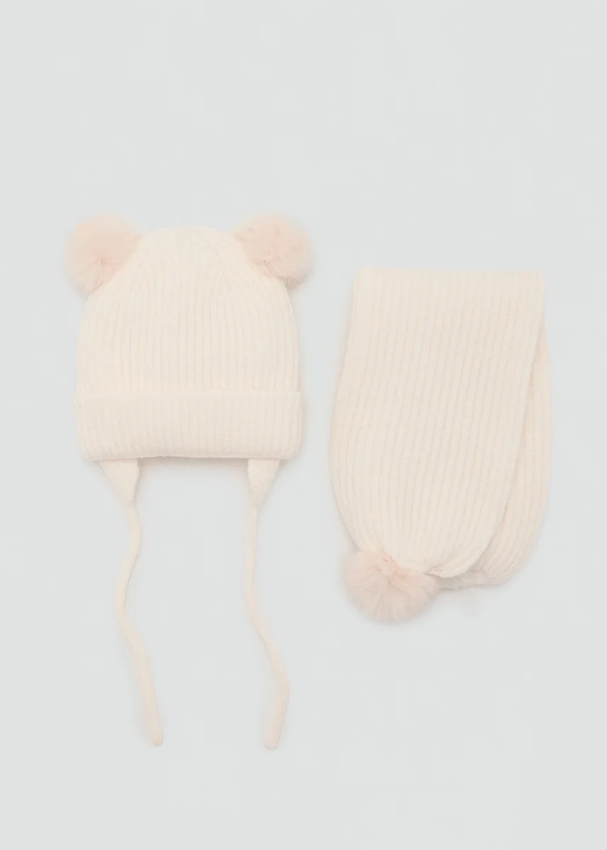 Pletená látka. Pompom detail. K dispozici jako set. K této šále je k dispozici ladící čepice.