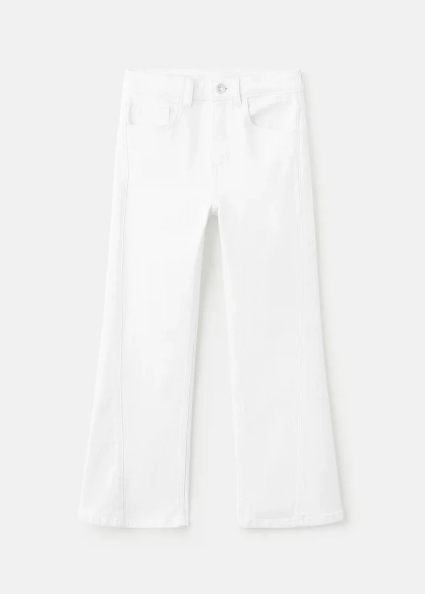 Bavlněná tkanina. Dlouhý střih. Rozšířený střih. Poutka na opasek. Pět kapes. Ozdobné švy