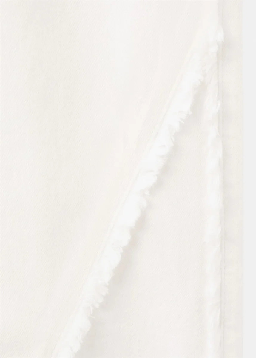 Bavlněná tkanina. Široký střih. Ozdobné švy. Roztřepené detaily. Poutka na pásek. Pět kapes. Zapínání na knoflík a zip.