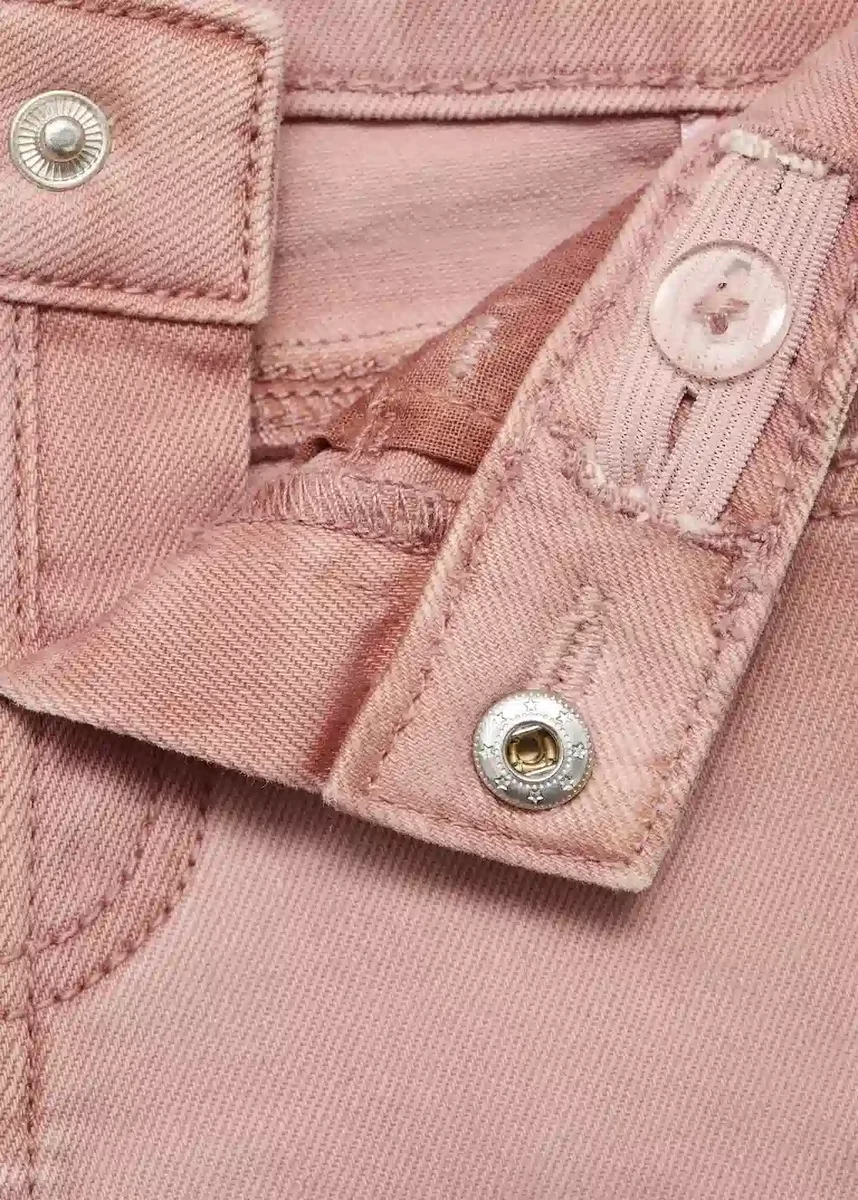 Bavlněná tkanina. Pružná tkanina. Dlouhý střih. Poutka na opasek. Zapínání na knoflík a zip. Nastavitelný pas s gumou. Kapsa na mince. Dvě boční kapsy. Dvě našité kapsy vzadu.