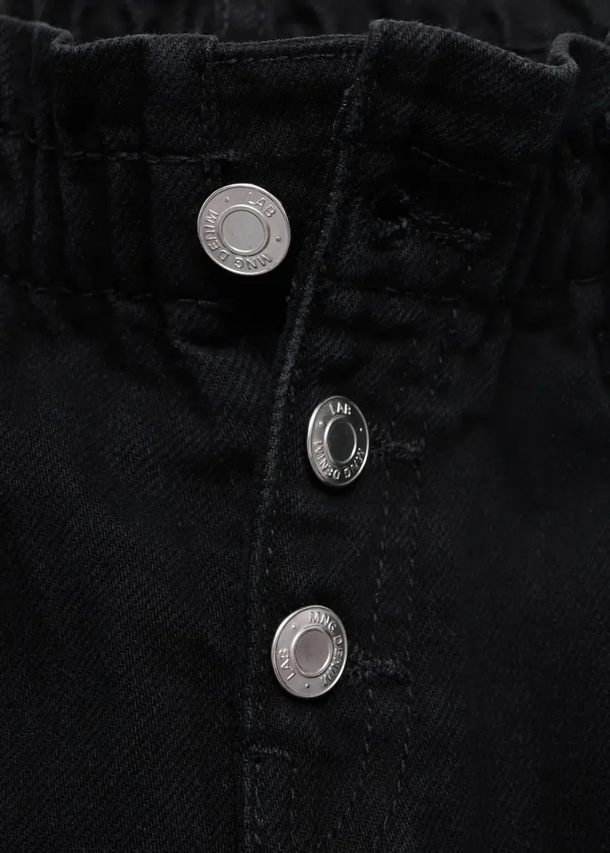 100% bavlna. Dlouhý střih. Rovný střih. Elastický pas typu paper bag. Zapínání na knoflíky v pase. Poutka na opasek. Dvě boční kapsy. Kapsa na mince