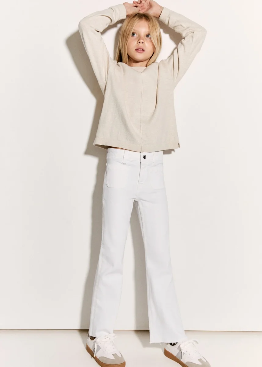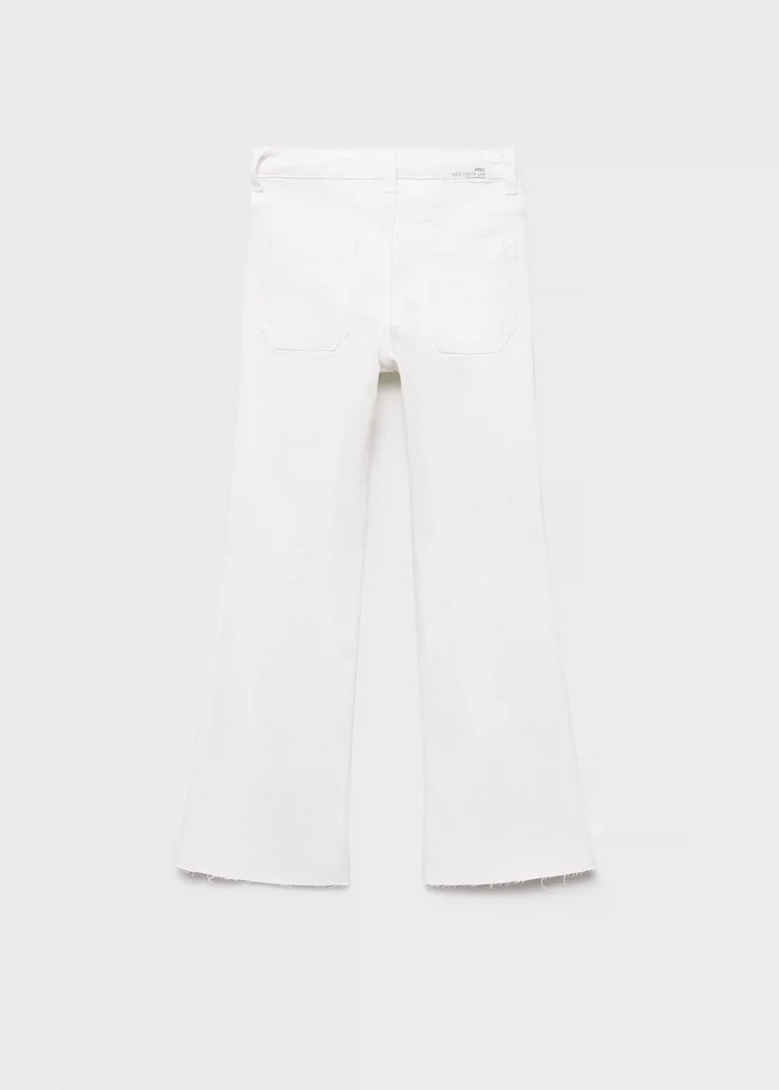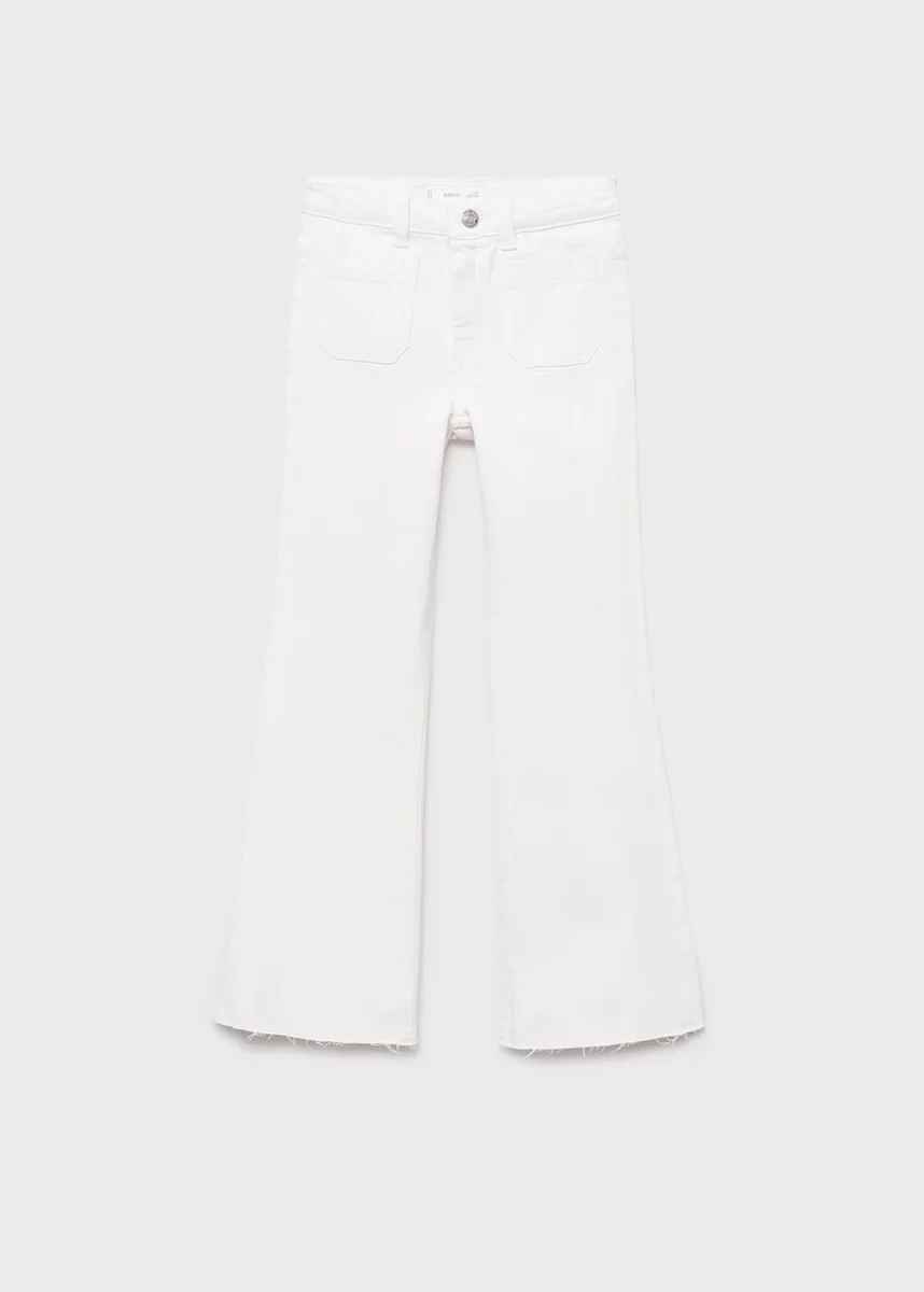 Tento model je vyroben z elastické bavlněné tkaniny a má střih džínů s rozšířenými nohavicemi. Má poutka na opasek, zapínání na knoflík a zip a čtyři našité kapsy.