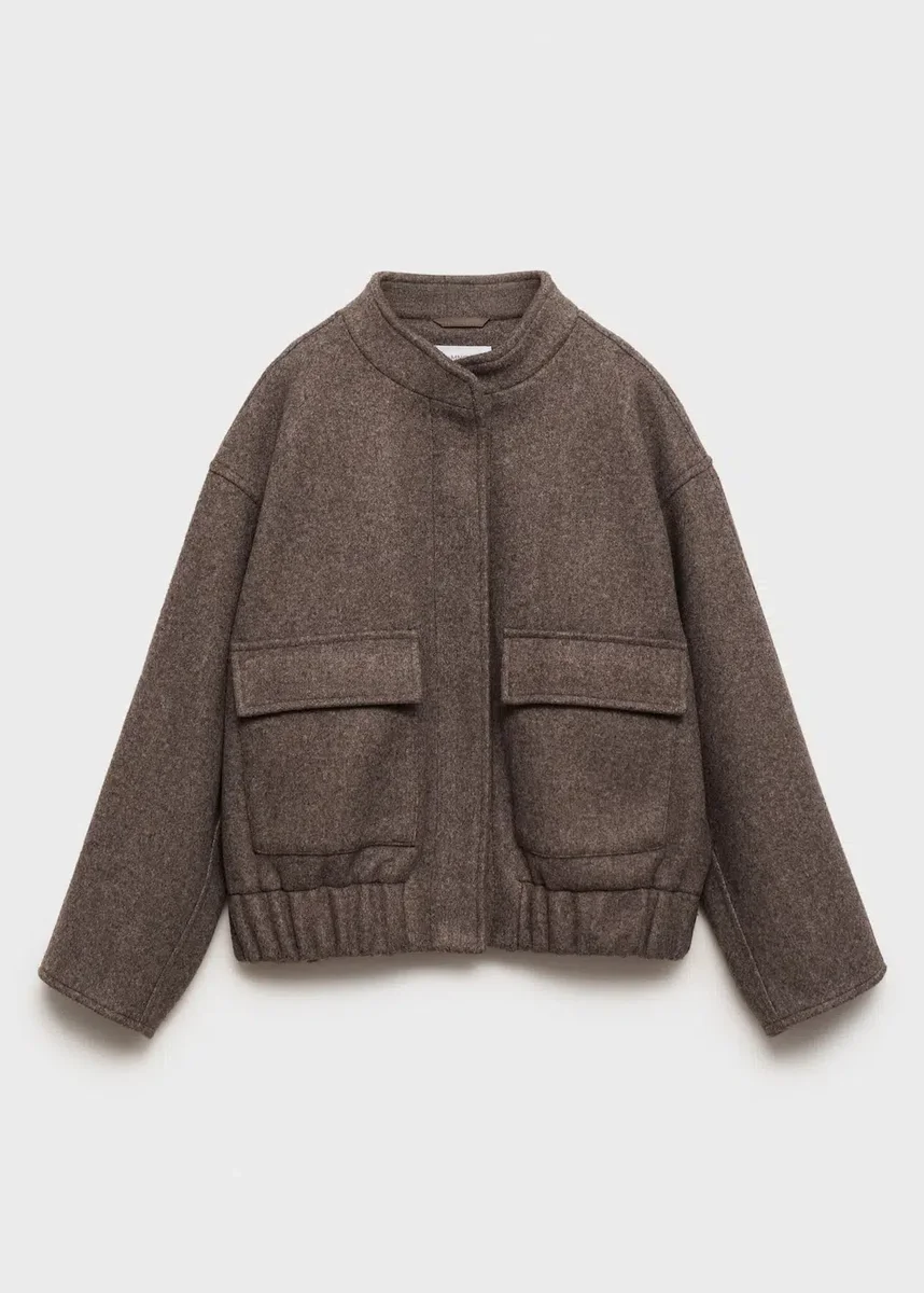 Látka. Oversized střih. Límec do V. Dlouhé rukávy s elastickými manžetami. Zapínání na knoflíky vpředu. Dvě přední kapsy. Lem s elastickou páskou.