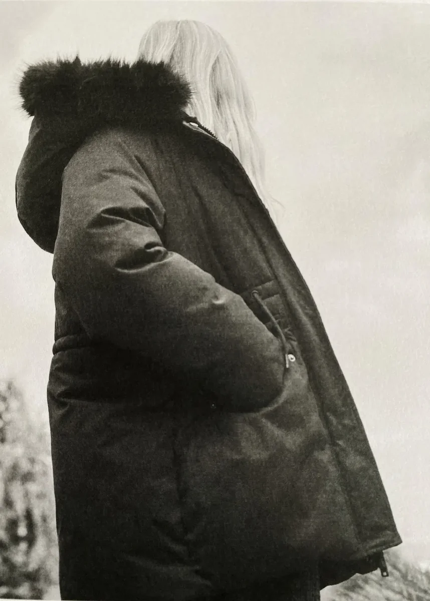 Polyesterová tkanina. Bavlněná tkanina. Rovný střih. Dlouhý střih. Dlouhé rukávy. S kapucí. Kapuce s detaily ze syntetické srsti. Dvě přední kapsy. Stahovací šňůrka v pase. Odnímatelný límec s kožešinovým efektem
