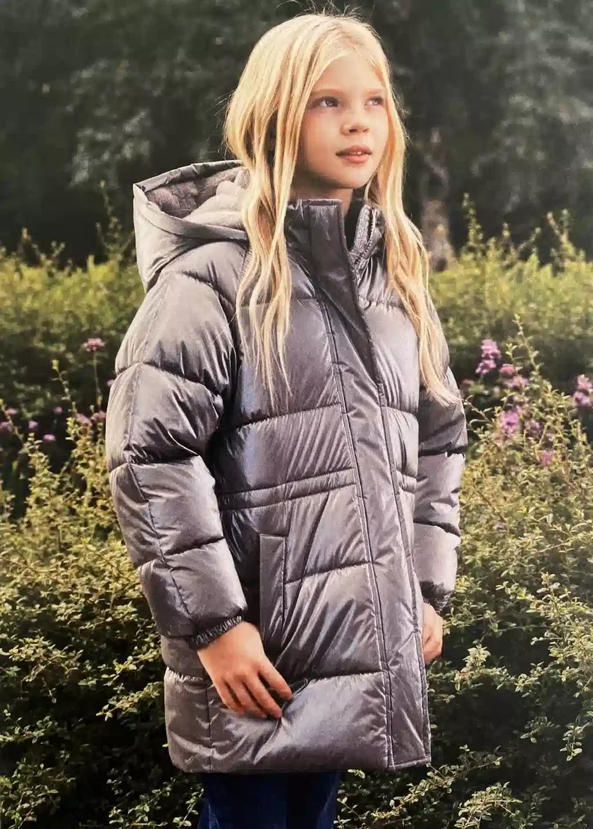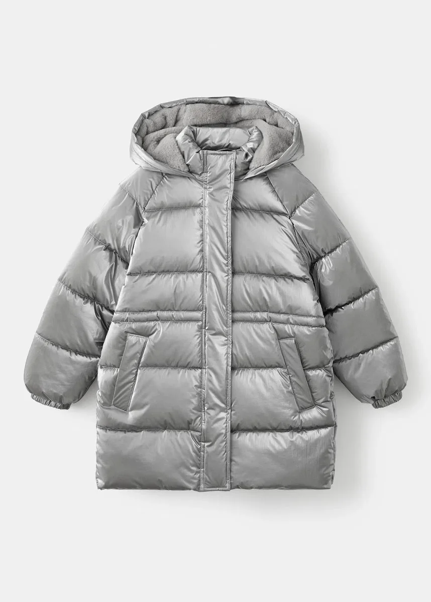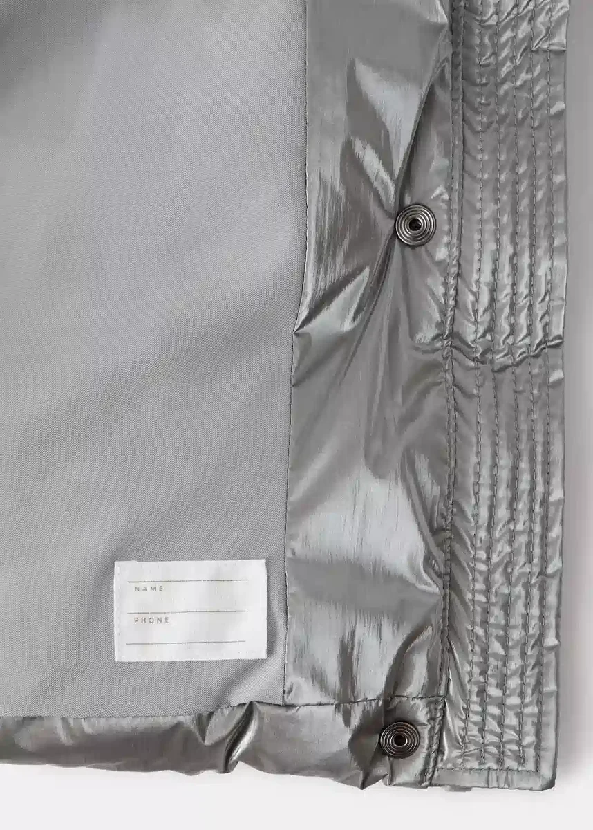 Prošívaná tkanina. Dlouhý střih. Rovný střih. Dlouhé rukávy s elastickými manžetami. Zapínání na zip vpředu. Dvě boční kapsy. Nastavitelný pas s gumou. Podšívka s výplní. Vánoční kolekce.
