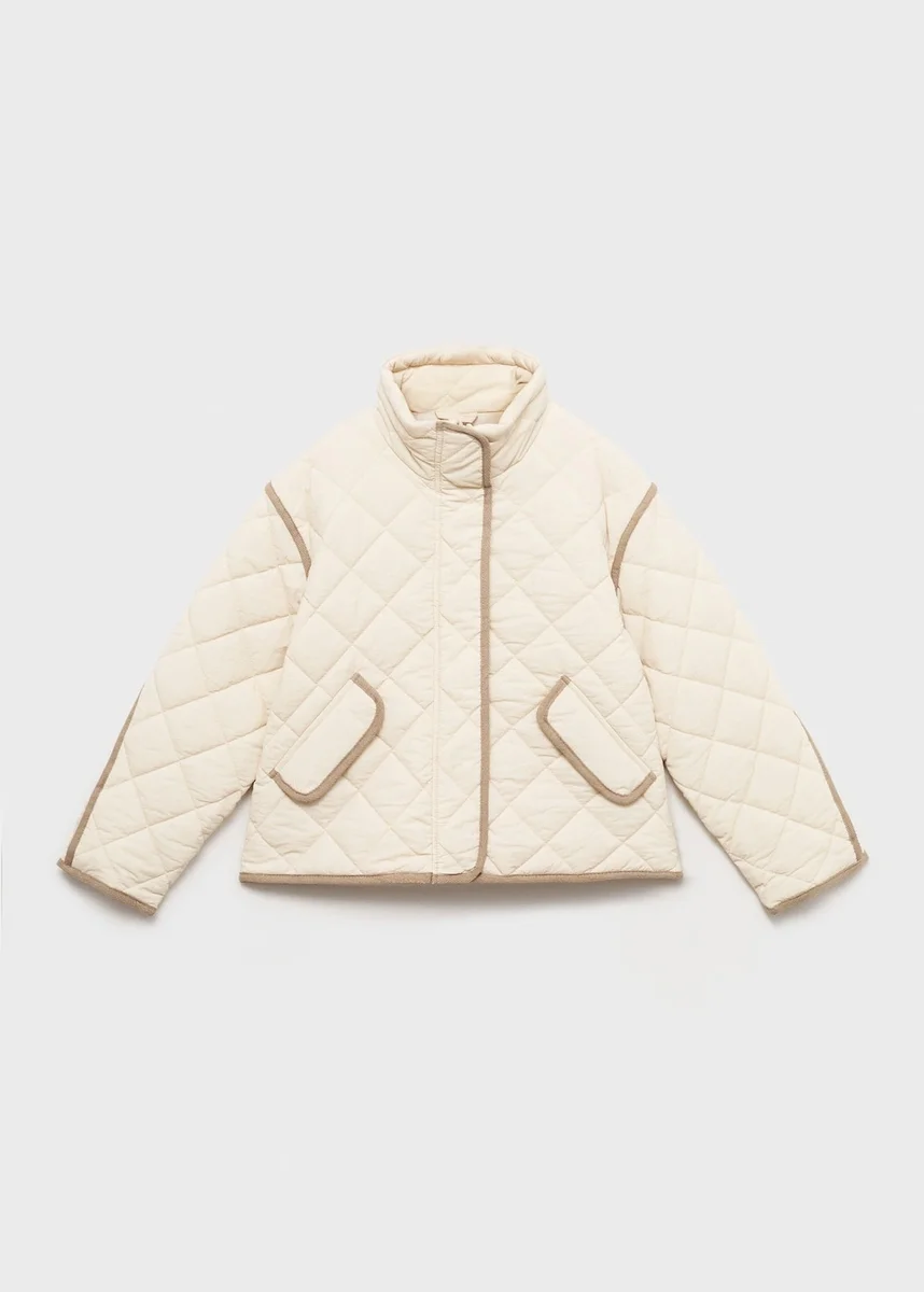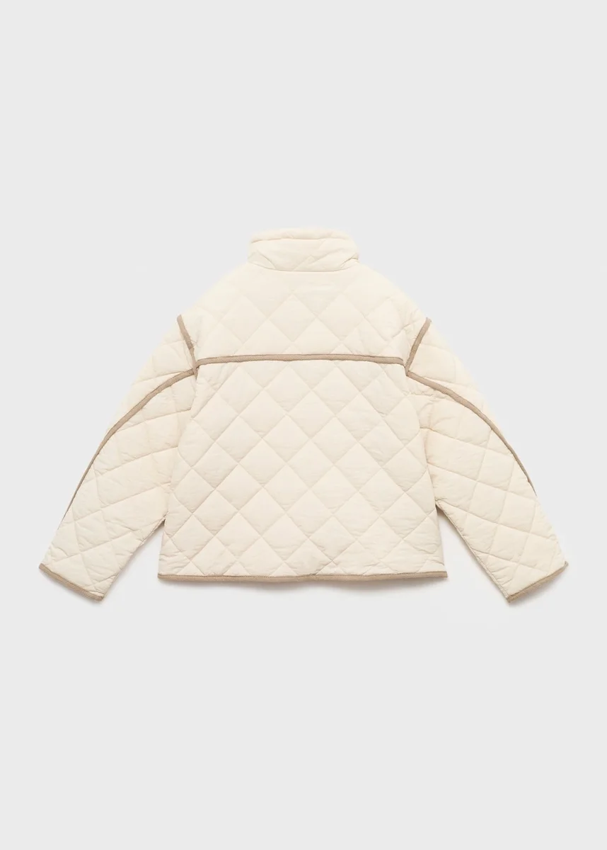 Prošívaná látka. Oversized střih. Stojací límec. Dlouhé rukávy. Zapínání na zip a knoflíky. Kontrastní švy. Dvě boční kapsy s klopou