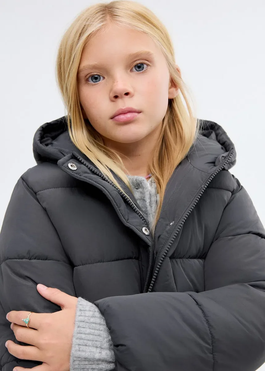 Prošívaná tkanina. Rovný střih. S kapucí. Dlouhé rukávy. Dvě boční kapsy. Zapínání na zip. Nastavitelná stahovací šňůrka v pase
