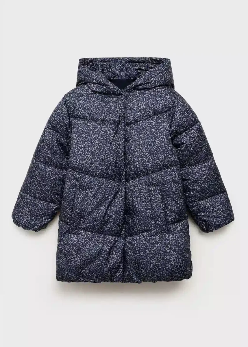 Prošívaná látka. Voděodolná látka. Rovný střih. Květinový potisk. S kapucí. Dlouhé rukávy. Měkký vnitřek. Dvě boční kapsy.