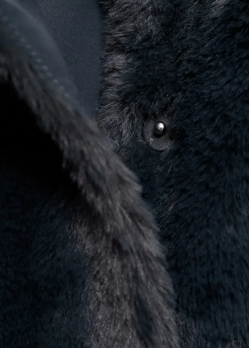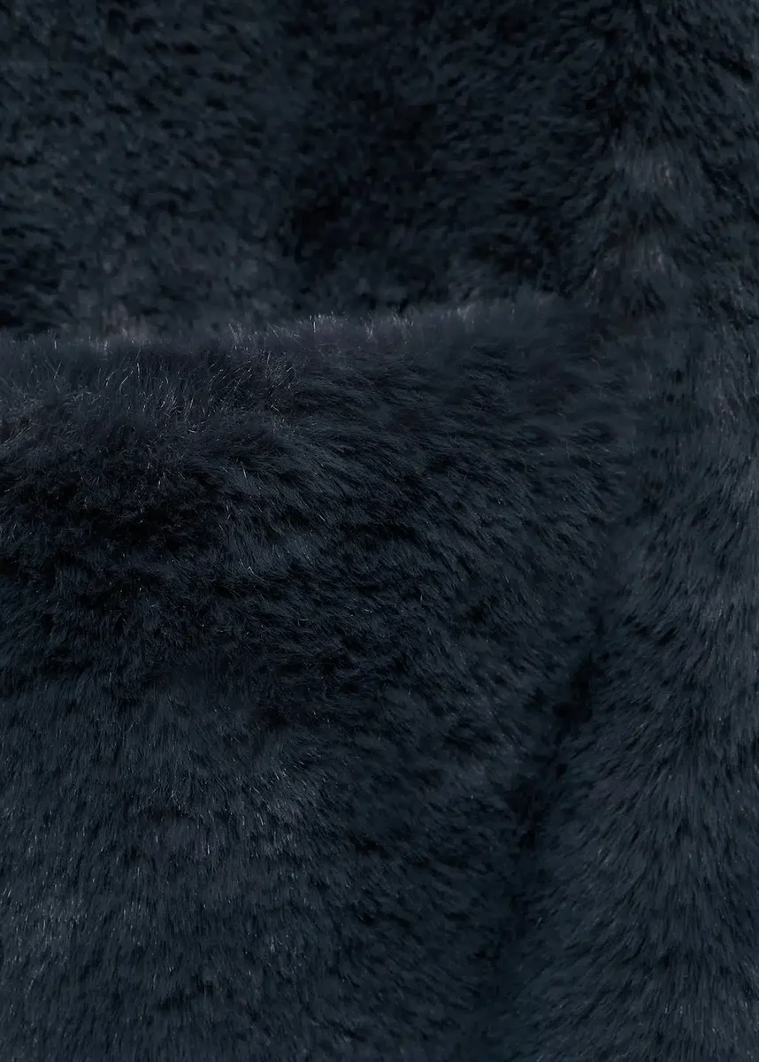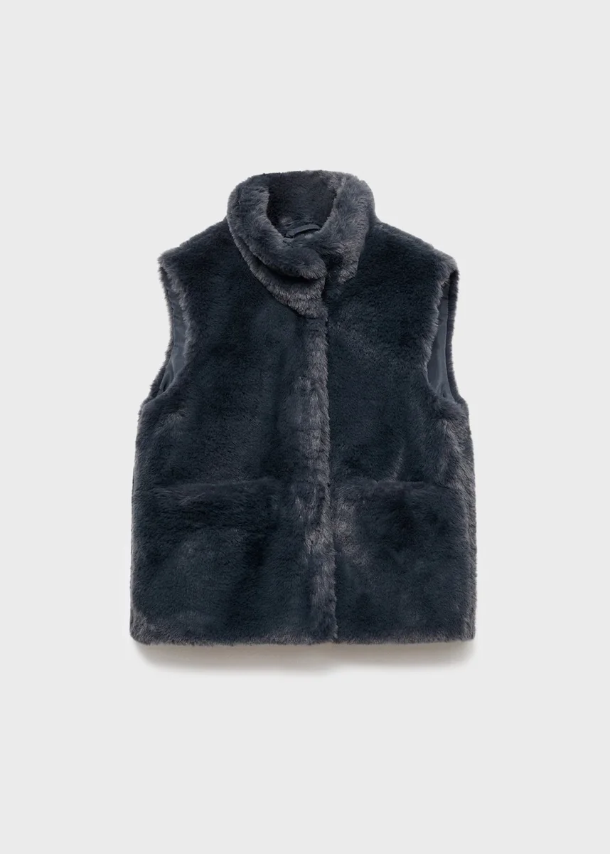 Polyesterová tkanina. Kožešinová tkanina. Rovný střih. Zapínání na knoflíky vpředu. Stojací límec. Bez rukávů. Dvě přední kapsy. Vánoční kolekce.