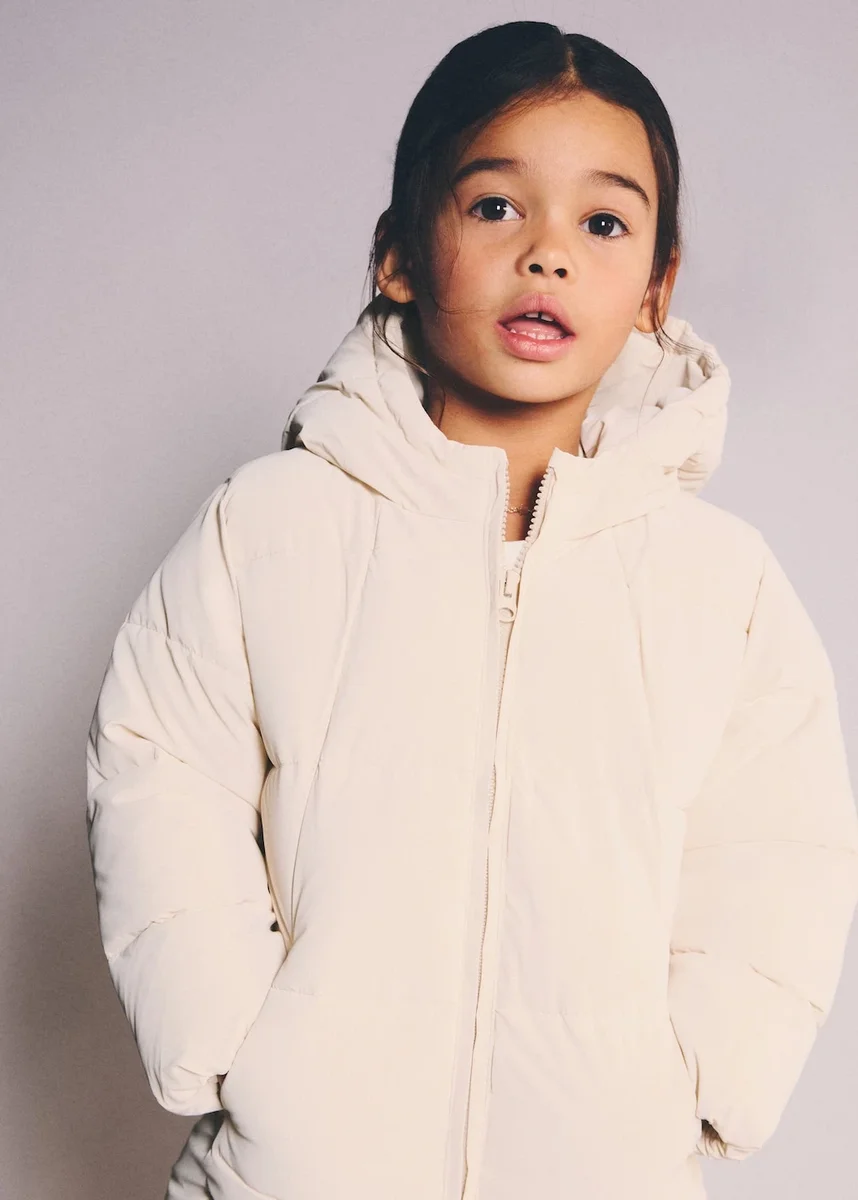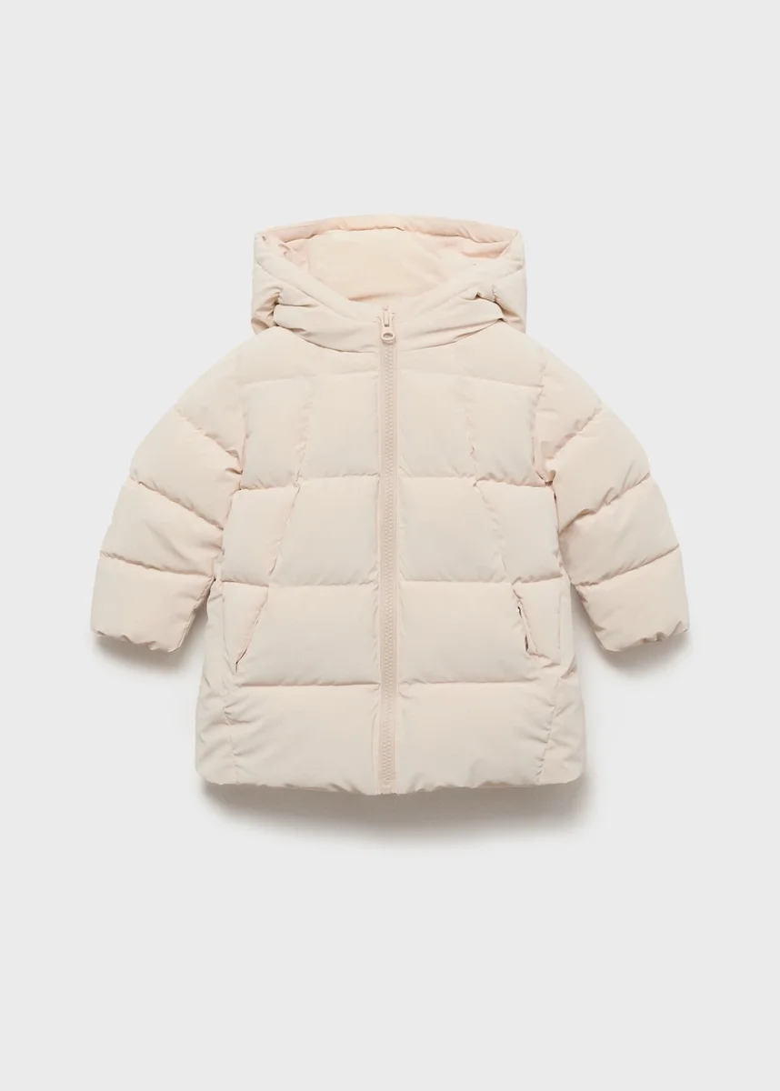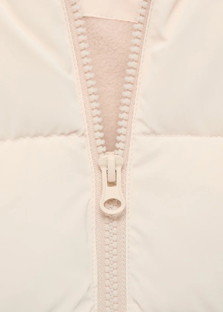 Prošívaná tkanina. Voděodolná tkanina. Rovný střih. S kapucí. Dlouhé rukávy. Zapínání na zip. Dvě boční kapsy. Vnitřní podšívka z polar fleece