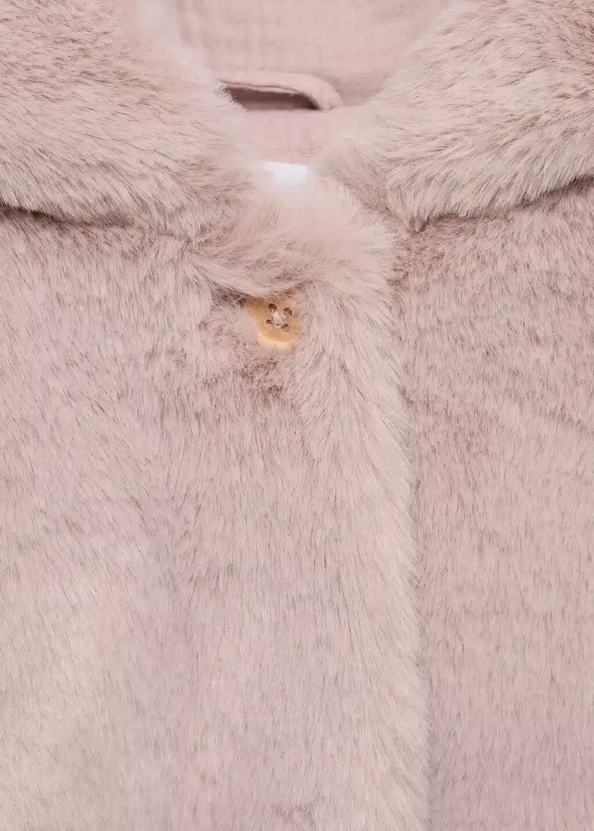Kožešinová tkanina. Vnitřní tkanina z tenké bavlněné látky. Rovný střih. S kapucí. Dlouhé rukávy. Zapínání na knoflíky vpředu. Dvě našité kapsy vpředu. Vánoční kolekce.