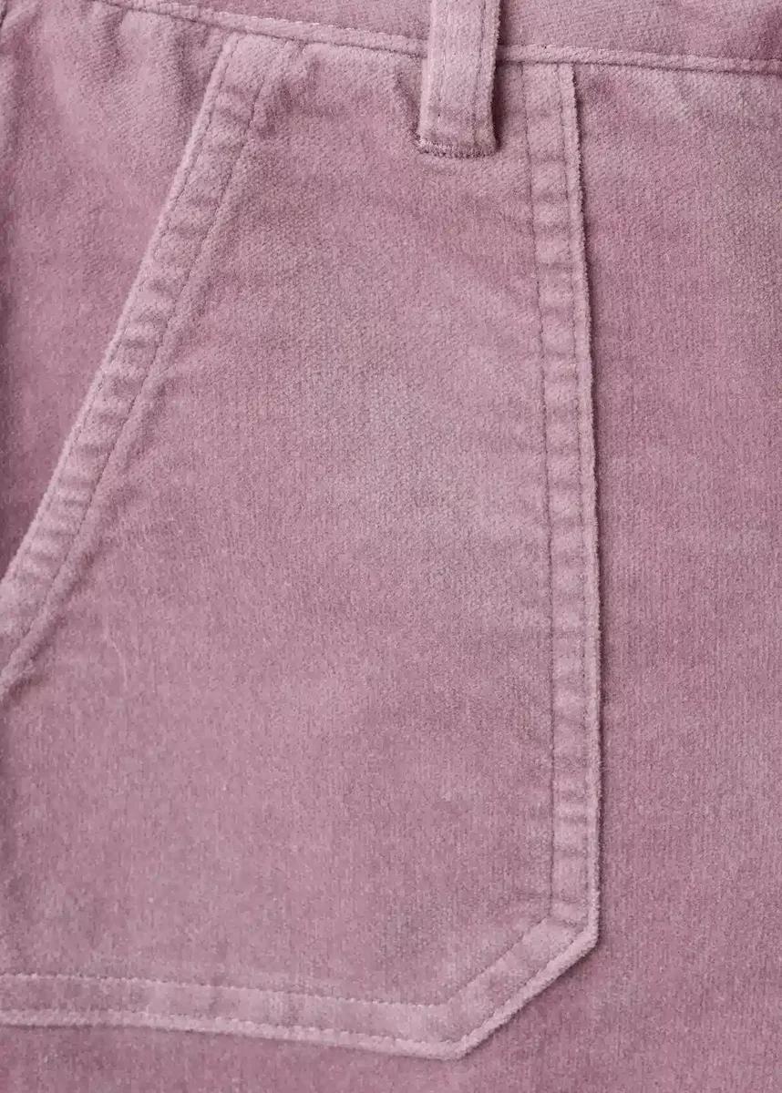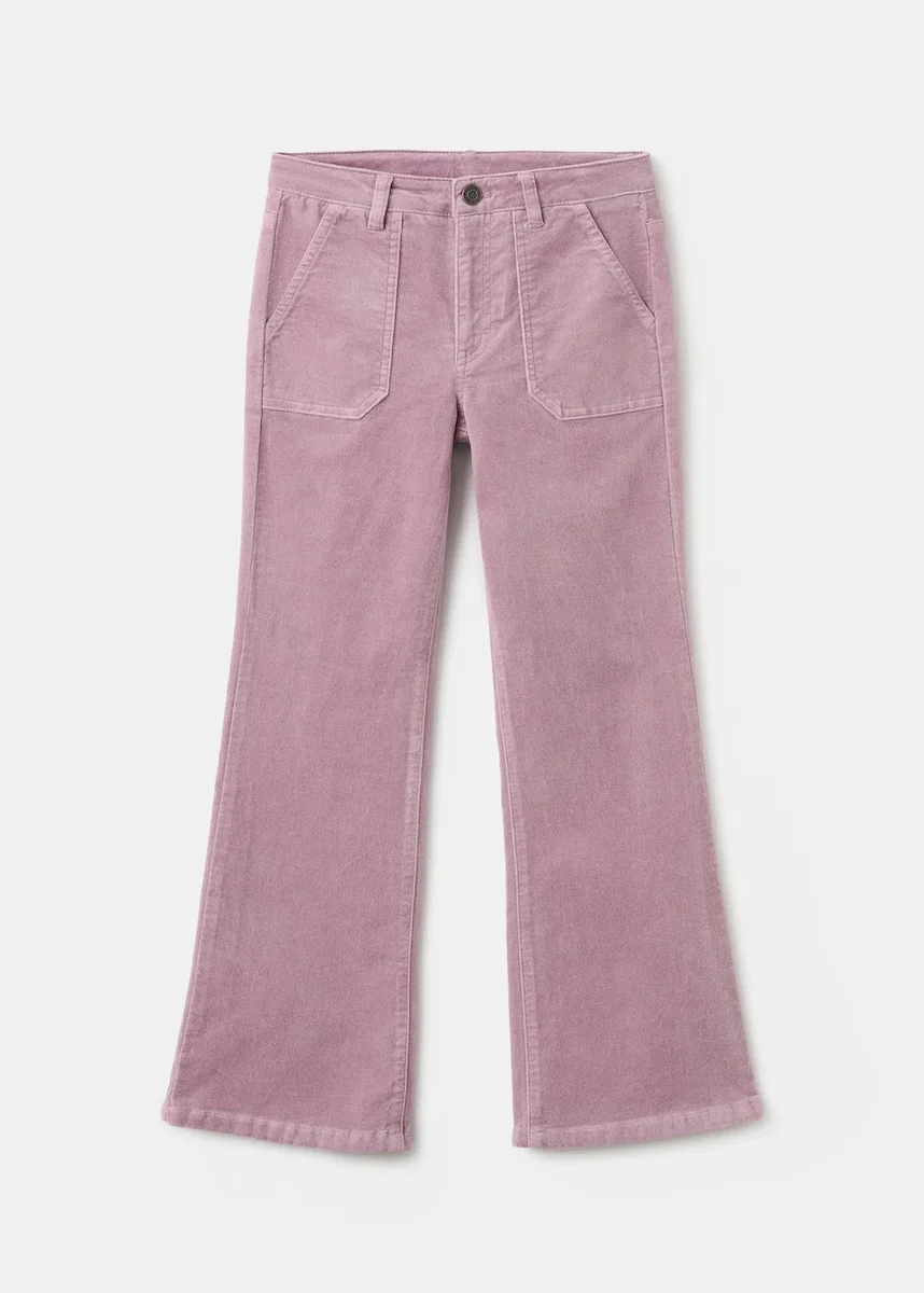 Bavlněná tkanina. Elastická tkanina. Dlouhý střih. Rozšířený střih. Rozšířený střih. Měkký povrch. Poutka na opasek. Dvě přední kapsy. Dvě našité kapsy vzadu. Zapínání na knoflíky