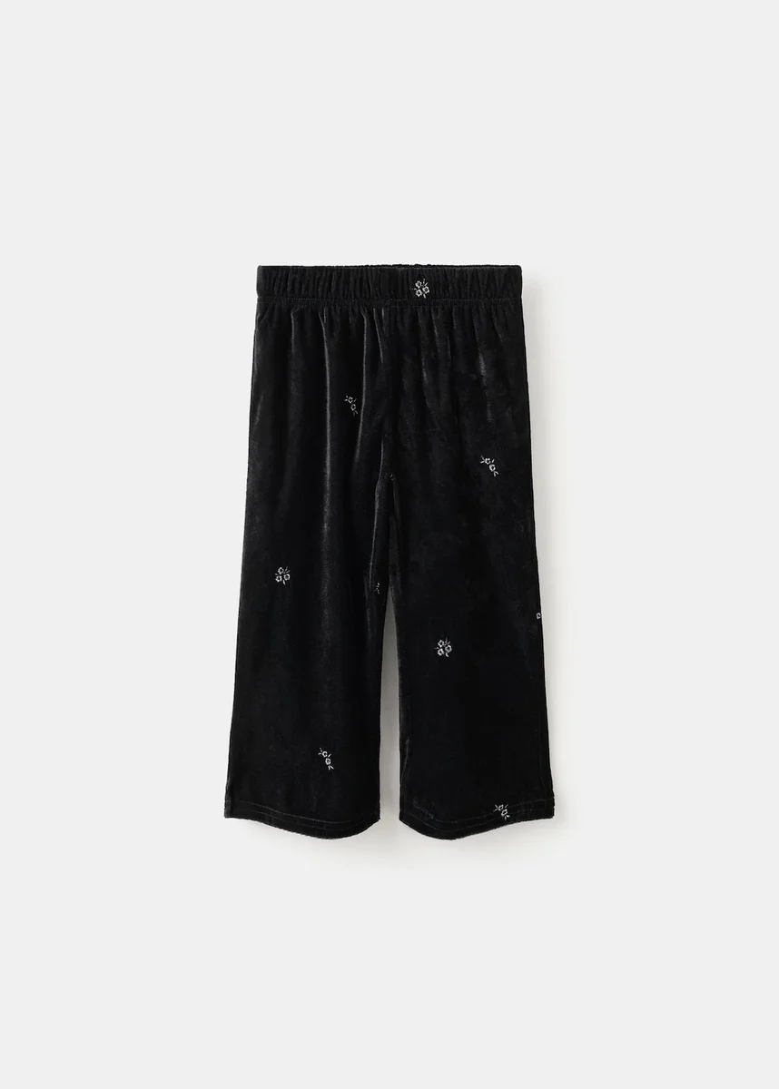 Sametová tkanina. Rovný střih. Vyšívaný vzor. Květinová výšivka. Elastický pas. Vánoční kolekce. Kolekce pro večírky. Černý pátek