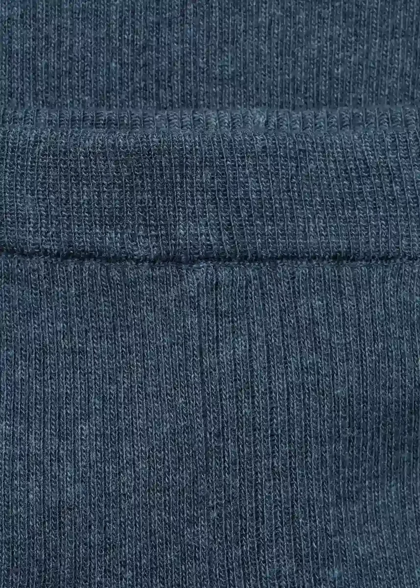 Bavlněná tkanina. Elastická tkanina. Dlouhý střih. Rovný střih. Elastický pas. Zvlněný lem. Celkový vzhled