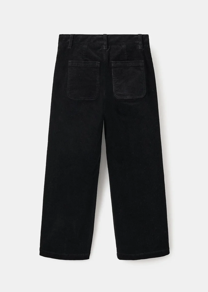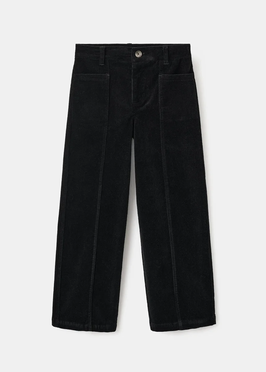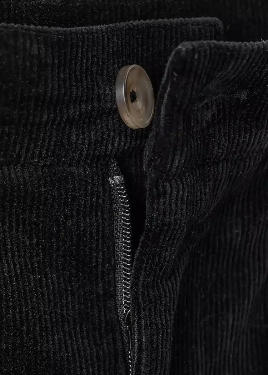 Tento dlouhý model z manšestru, bavlny a strečového materiálu má rovný střih s normální výškou pasu. Má zapínání na knoflík a zip, dvě přední kapsy a dvě zadní našité kapsy s detaily švů.