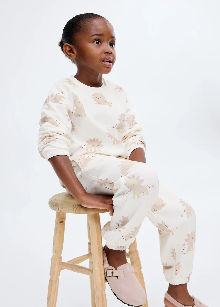 100% bavlna. Dlouhý střih. Potisk. Potisk lva. Elastický pas. Elastický lem. Kompletní look. K dispozici je i ladící mikina.
