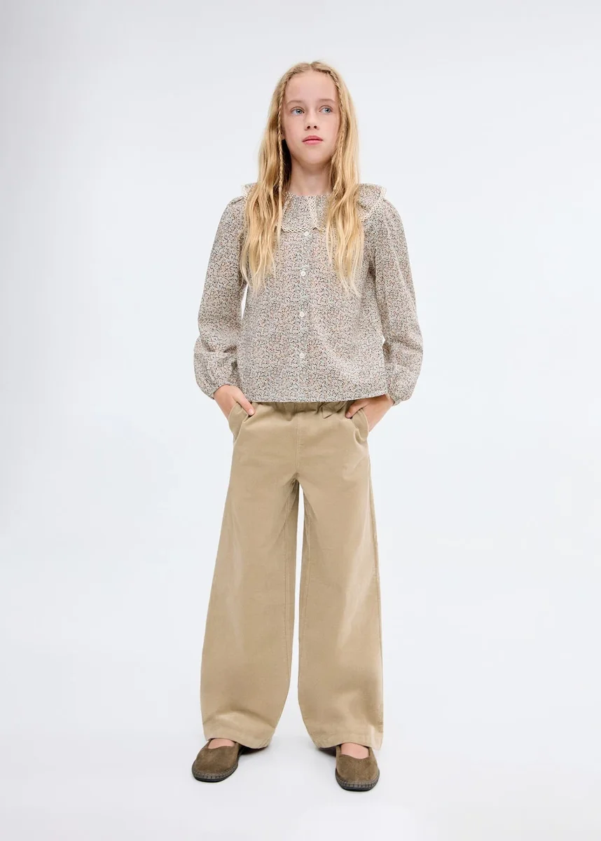 100 % bavlna. Střih do A. Květinový potisk. Dlouhé rukávy s žebrovanými lemy. Zapínání na knoflíky vpředu
