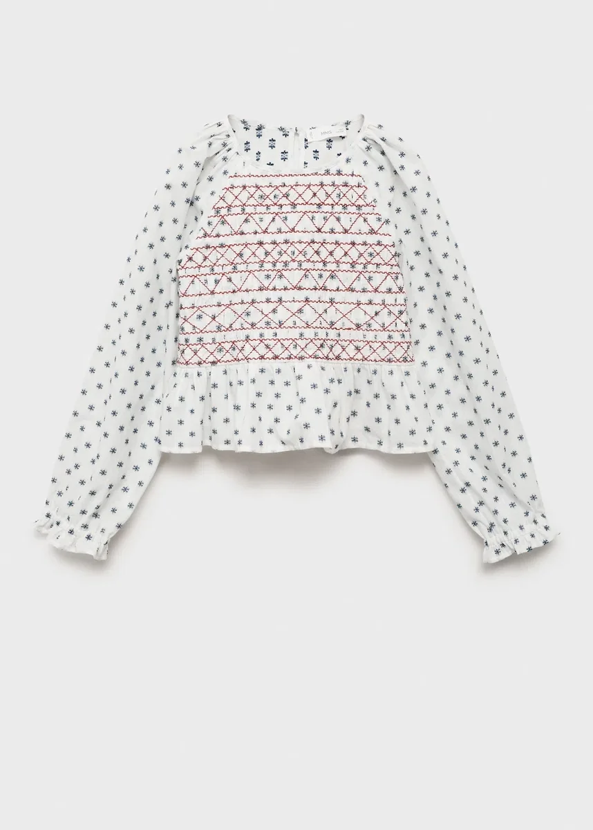 Bavlněná tkanina. Potisk. Vyšívané detaily. Kulatý výstřih. Dlouhé rukávy s elastickými manžetami. Zapínání na knoflíky vzadu. Volán na spodním lemu. S vnitřní podšívkou. Black Friday.
