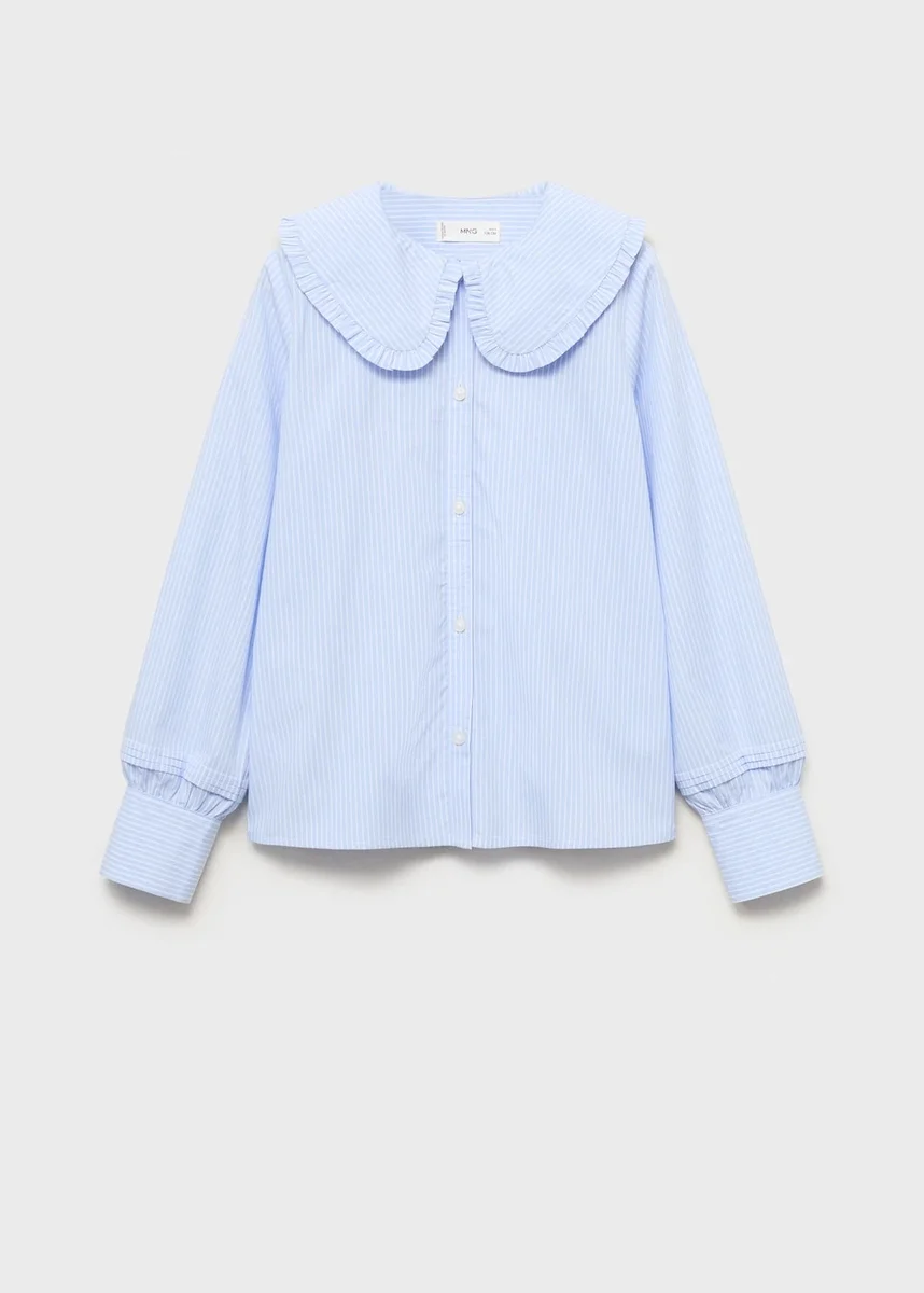 100% bavlna. Jednoduchý design. Rovný střih. Babydoll límec. Dlouhé rukávy. Zapínání na knoflíky.