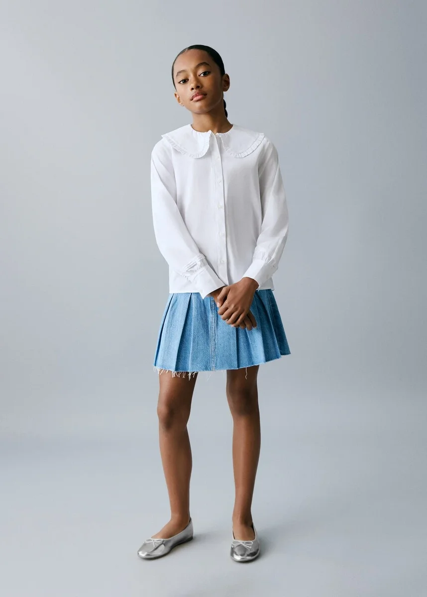 100 % bavlna. Jednoduchý design. Rovný střih. Límec typu babydoll. Dlouhé rukávy. Zapínání na knoflíky